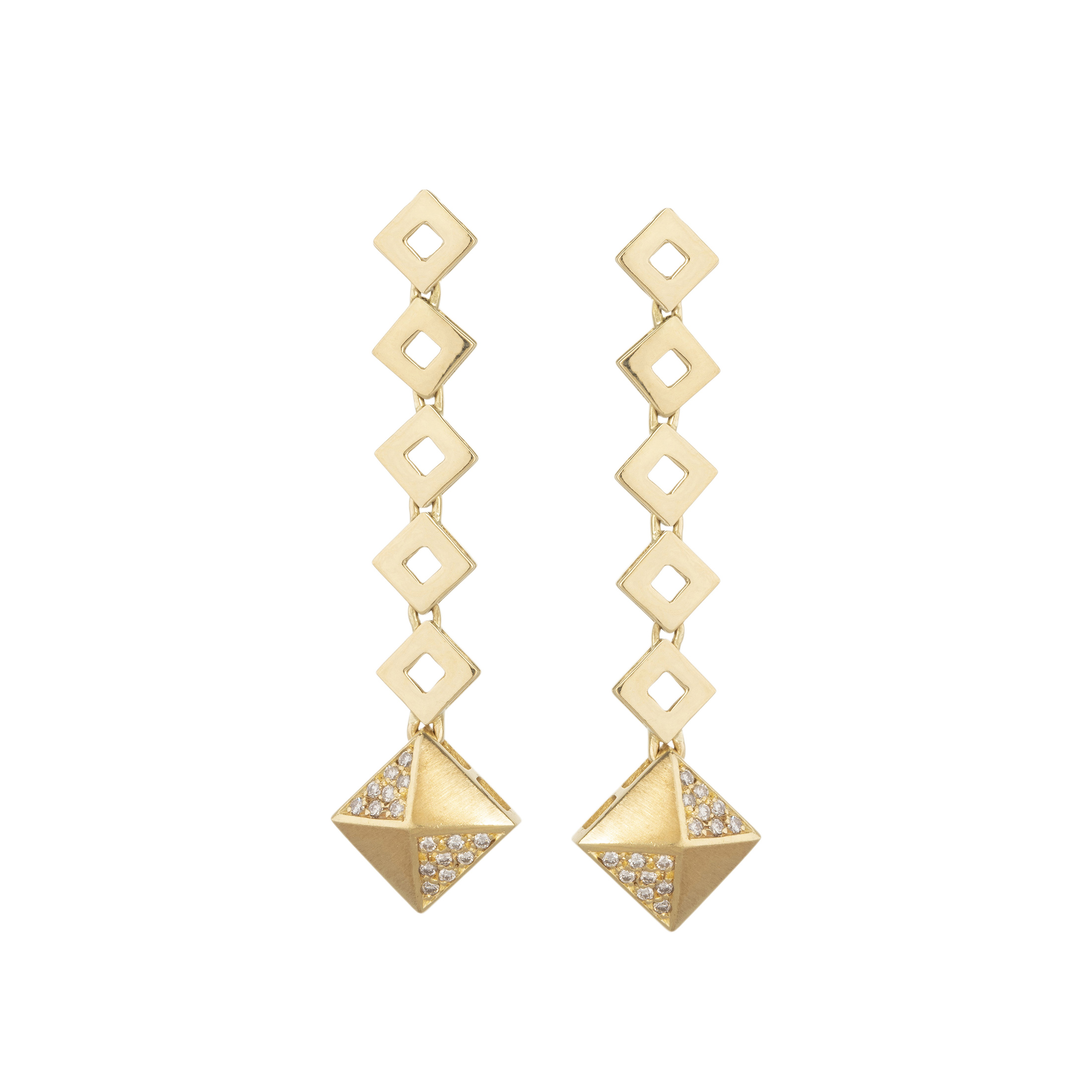 Brinco de ouro amarelo com 0,20ct de brilhantes e 10,5g. Medida 5,2cm.