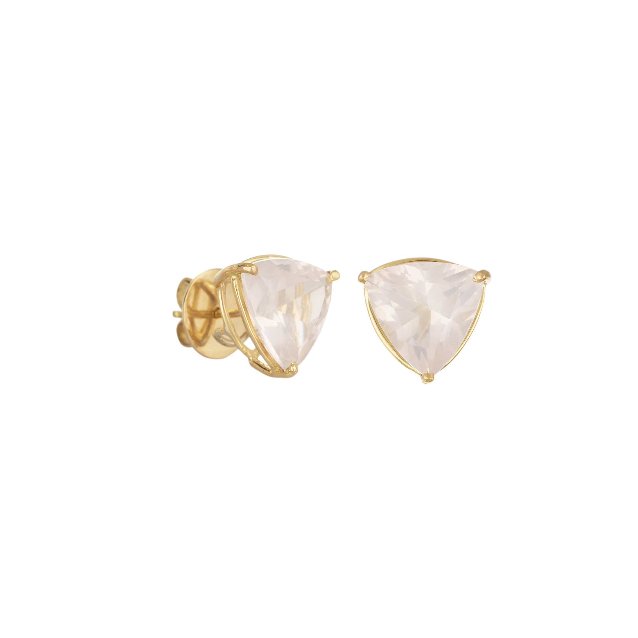 Brinco de ouro amarelo com quartzos rosa. Medida 1,1cm.