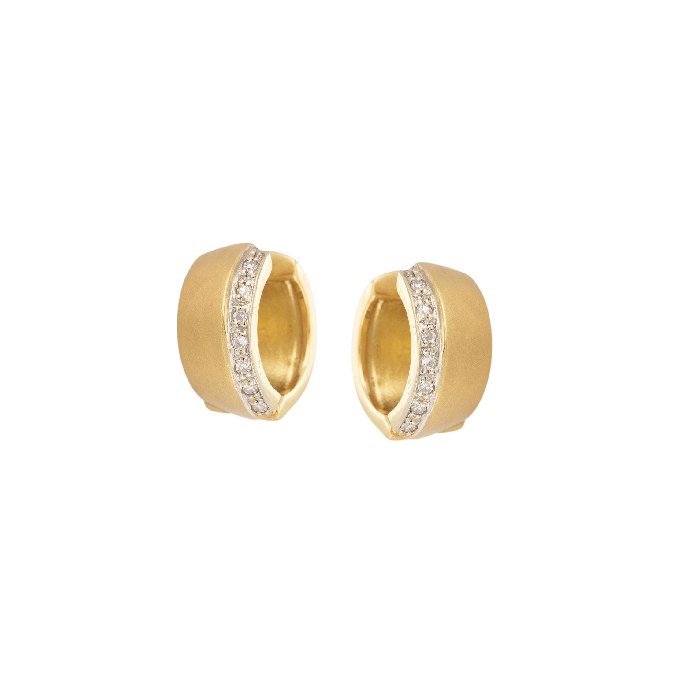 Brinco de ouro amarelo com 0,12ct de brilhantes e 6,7g. Medida 1,4cm.