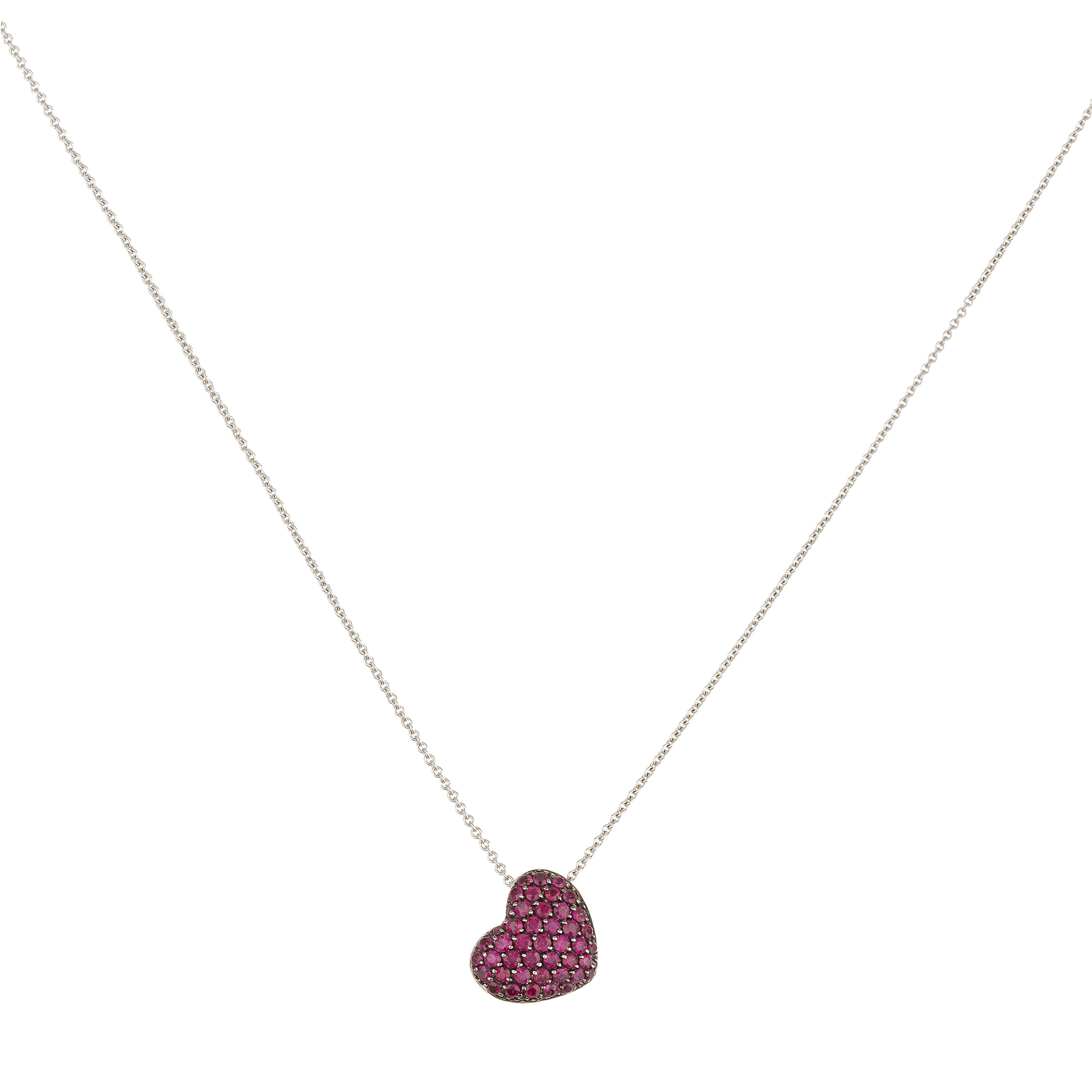 Corrente com pingente de ouro branco, 0,85ct de rubis e 0,01ct de brilhantes. Medidas 1,2cm/42cm.