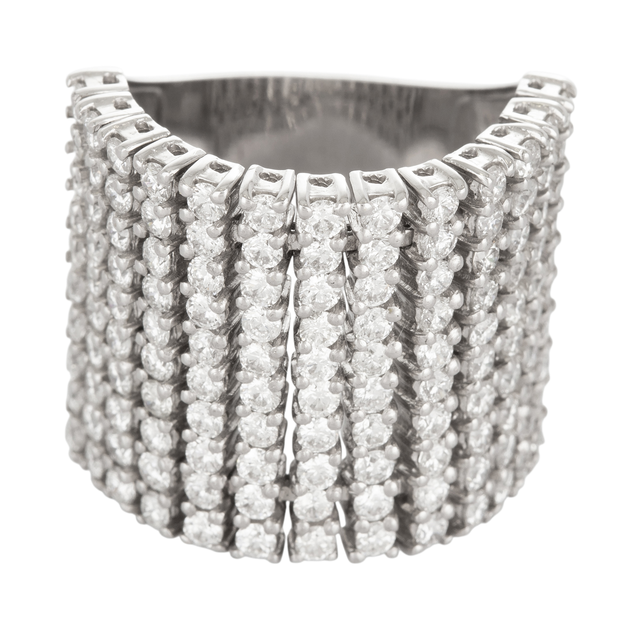 Anel de ouro branco com 4,50ct de brilhantes e 15,8g. Medida 18.