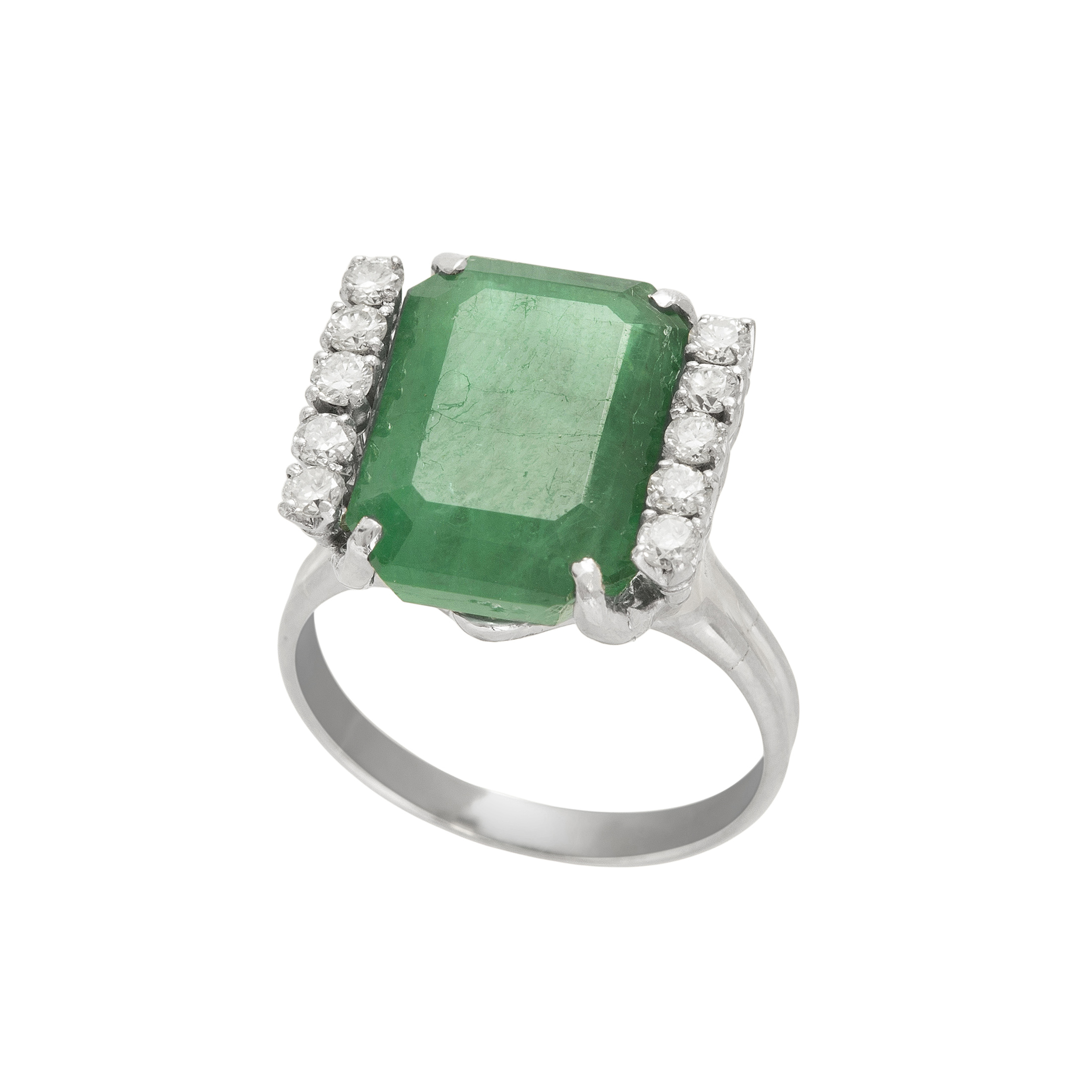 Anel de platina com esmeralda, 0,45ct de brilhantes e 7,1g. Medida 17.