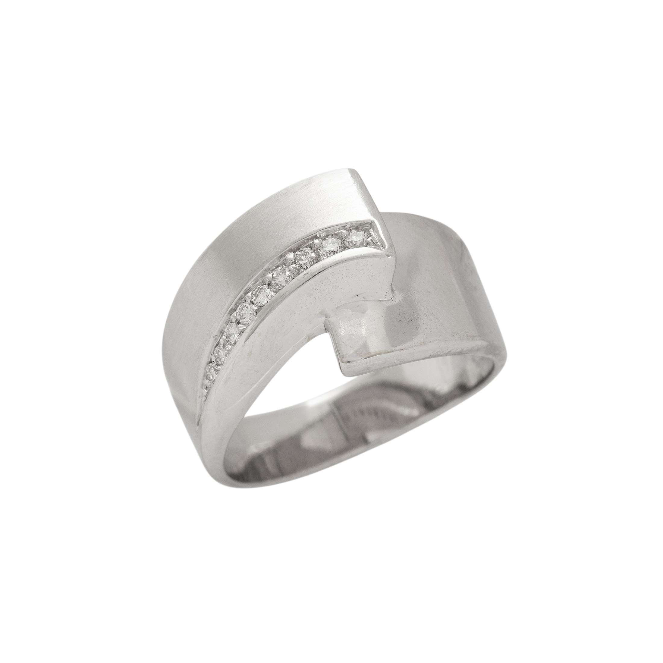 Anel de ouro branco com 0,10ct de brilhantes e 6,3g. Medida 17.