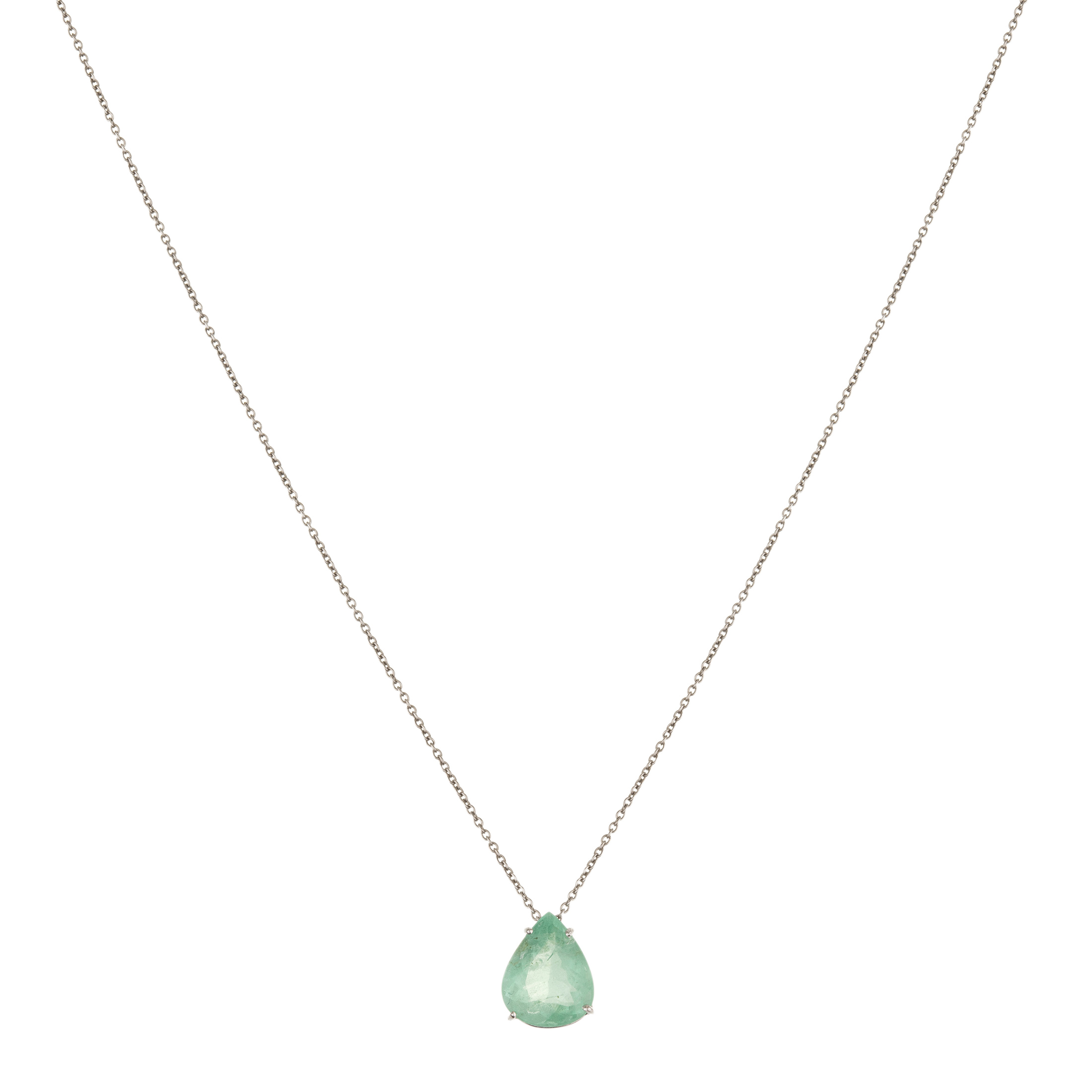 Corrente com pingente de ouro branco e 2,70ct de esmeralda. Medidas 1cm/50cm.