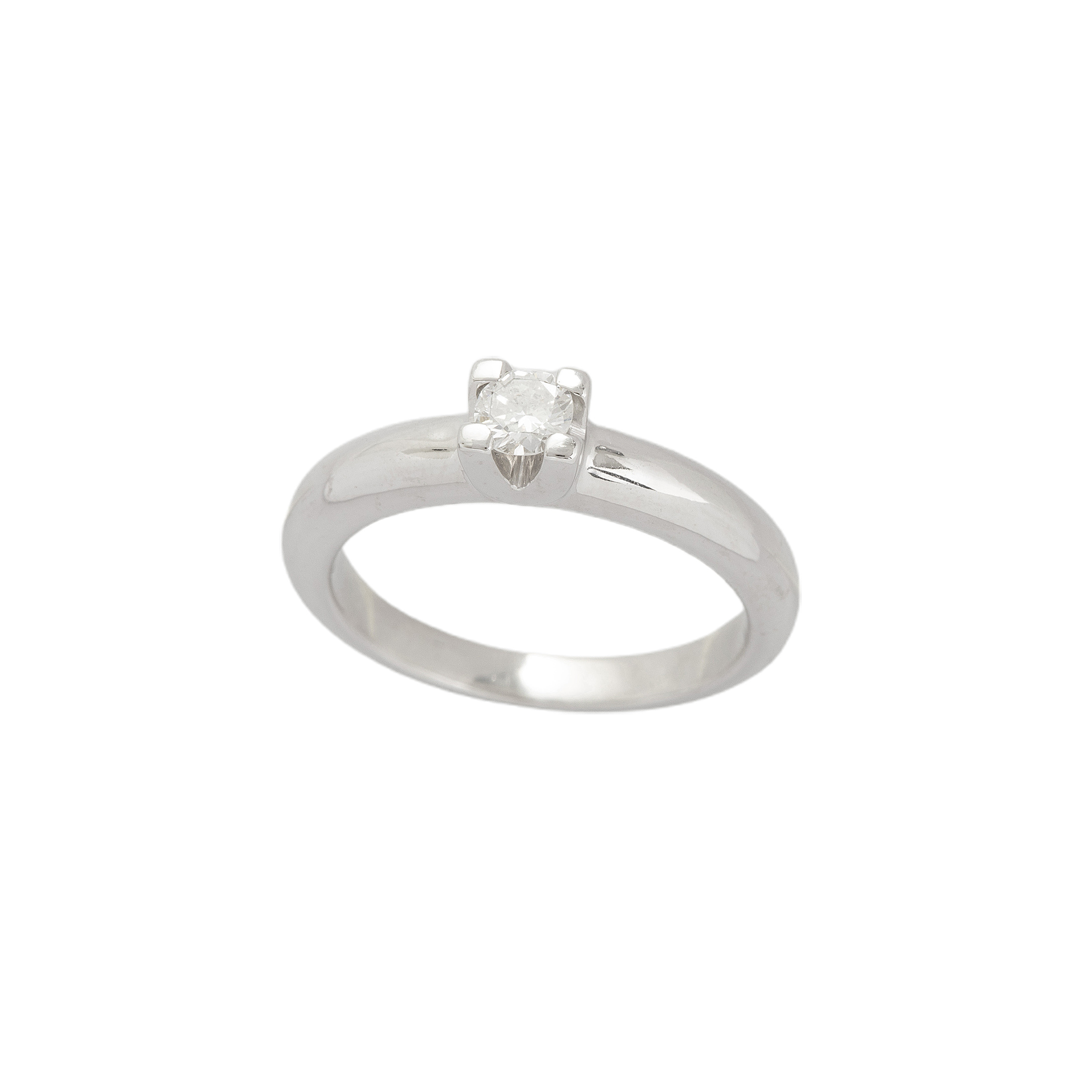 Anel solitário de ouro branco com 0,25ct de brilhantes. Medida 14.