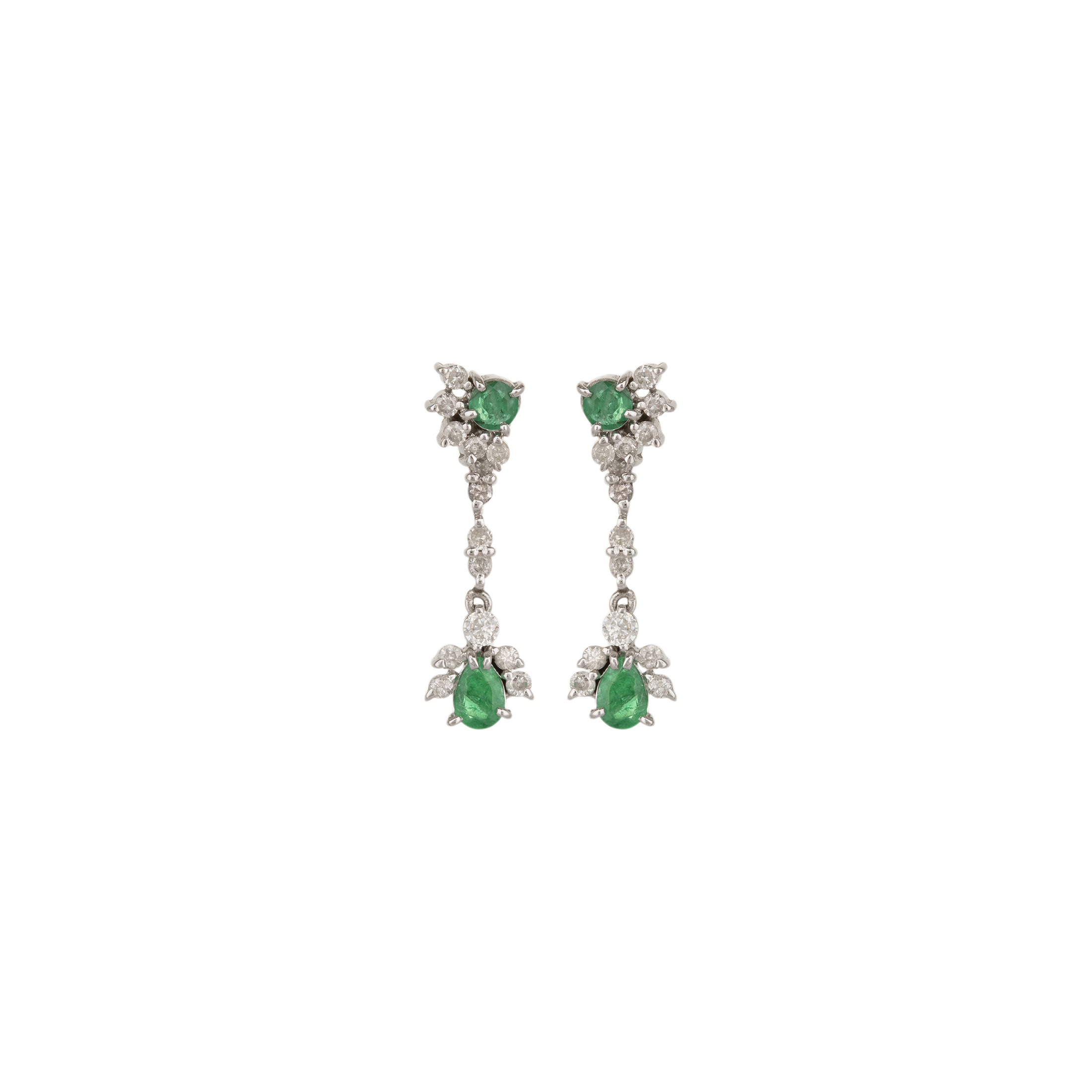 Brinco de ouro branco com 0,60ct de esmeraldas e 0,62ct de brilhantes. Medida 2,7cm.