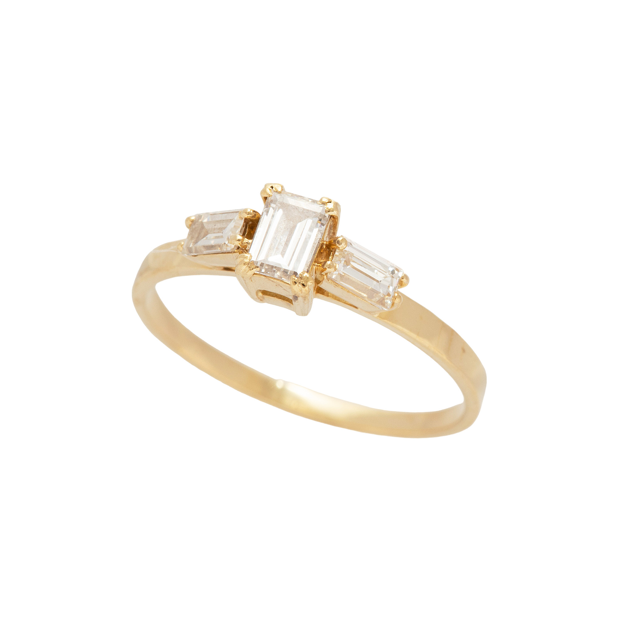 Anel de ouro amarelo com 0,45ct de diamantes lapidação baguete (sendo 0,25ct a central). Medida 15.
