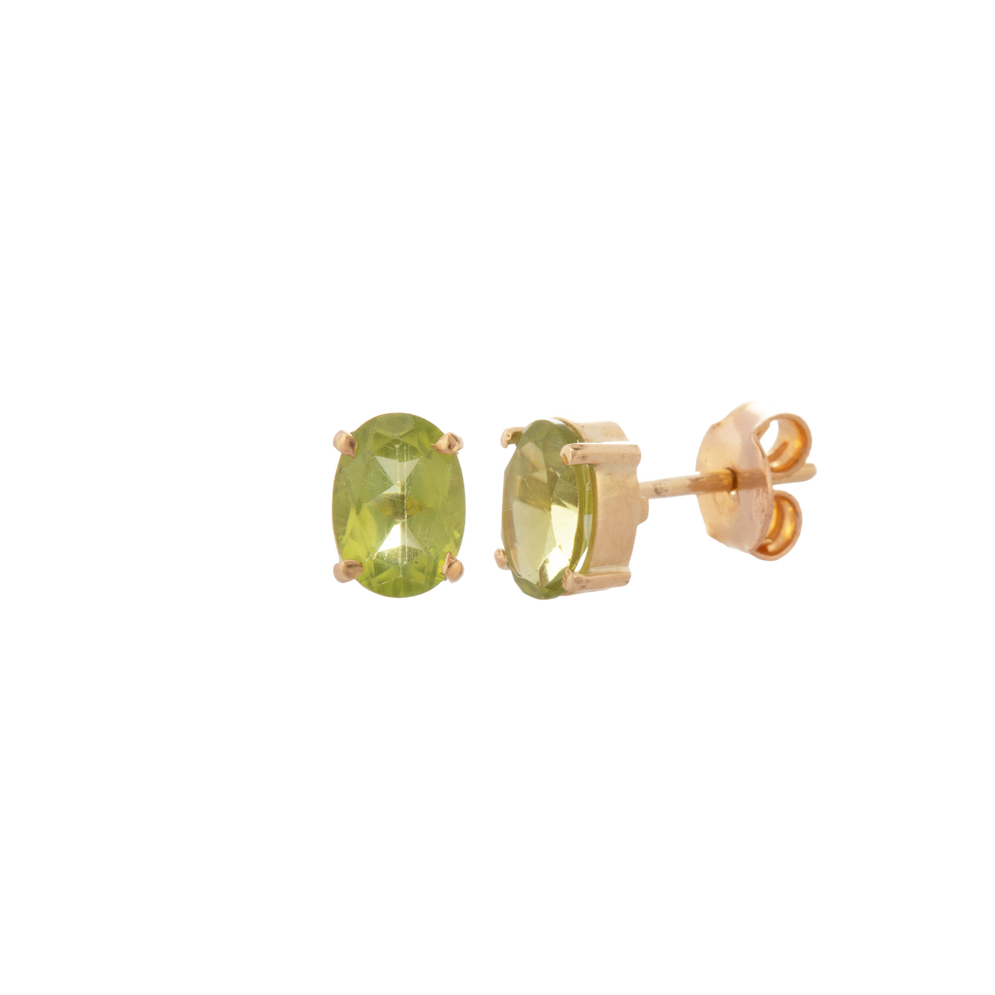 Brinco de ouro amarelo com peridotos. Medida 0,7cm.
