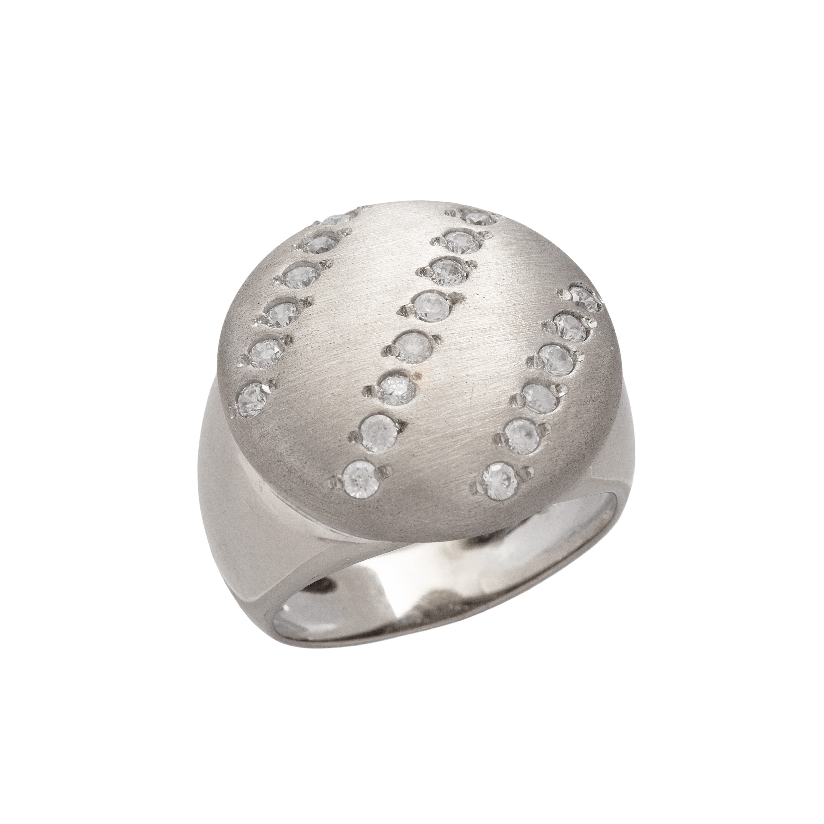 Anel de ouro branco com 0,50ct de brilhantes e 9,2g. Medida 17.