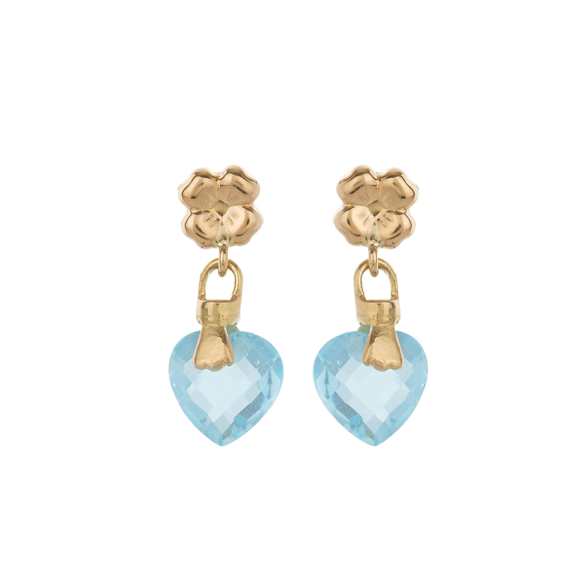 Brinco de ouro amarelo com topázios azuis. Medida 2,4cm.