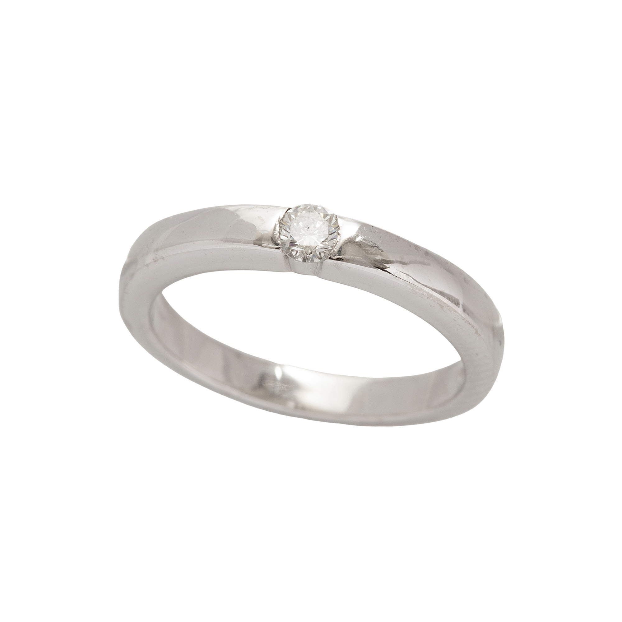 . Anel de ouro branco com 0,14ct de brilhante. Medida 15.