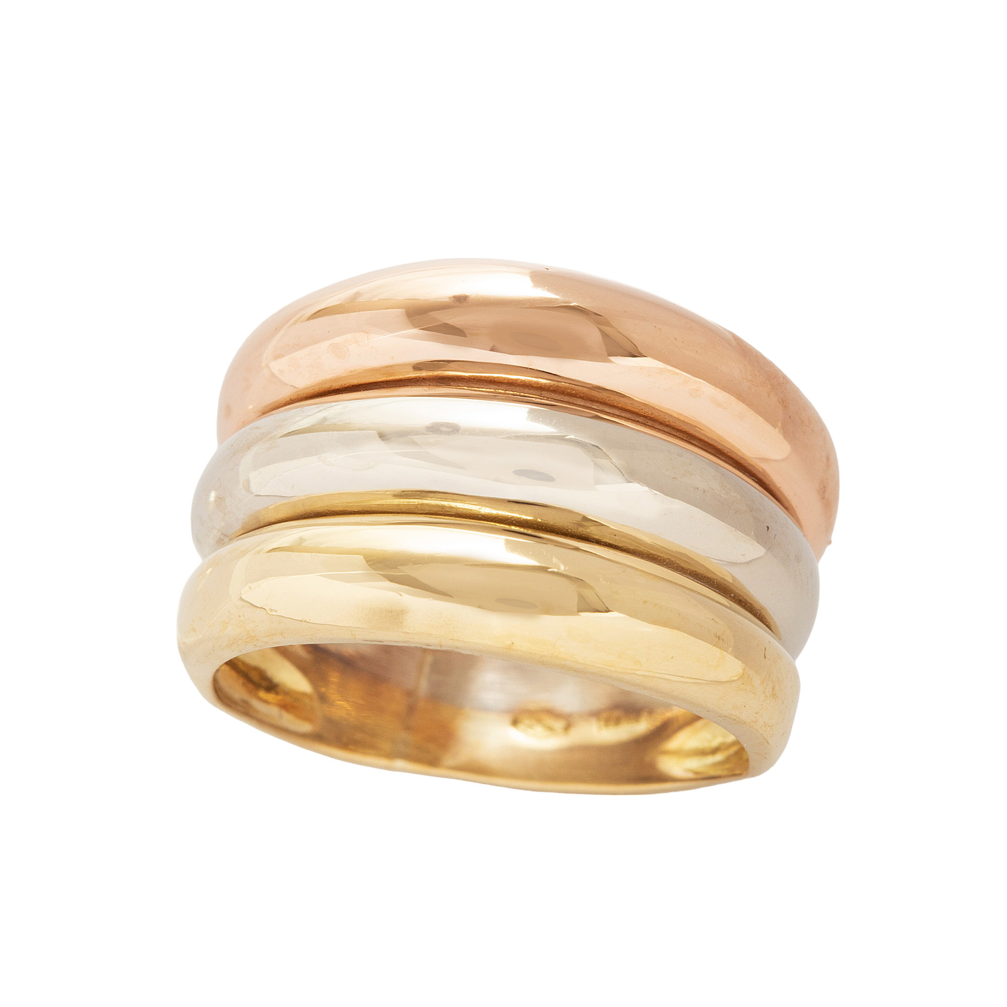 Anel de ouro amarelo, branco e rosé com 8,0g. Medida 17.