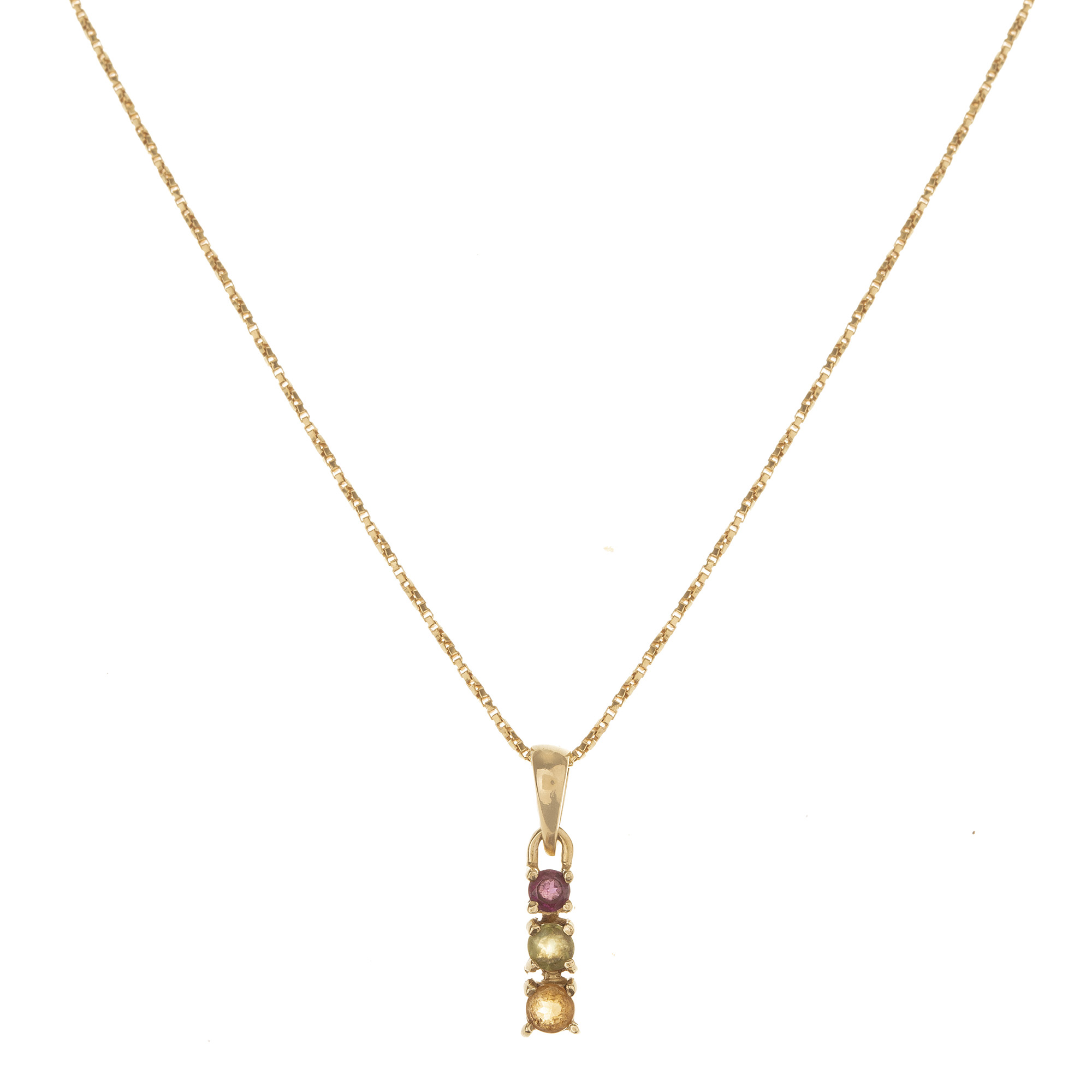 Corrente com pingente de ouro amarelo, ametista, berilo e citrino. Medidas 2,1cm/49cm.