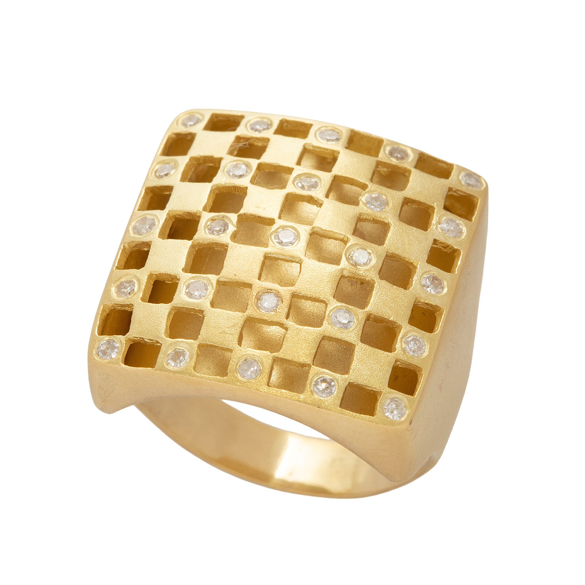 Anel de ouro amarelo com 0,20ct de brilhantes e 8,4g. Medida 18.