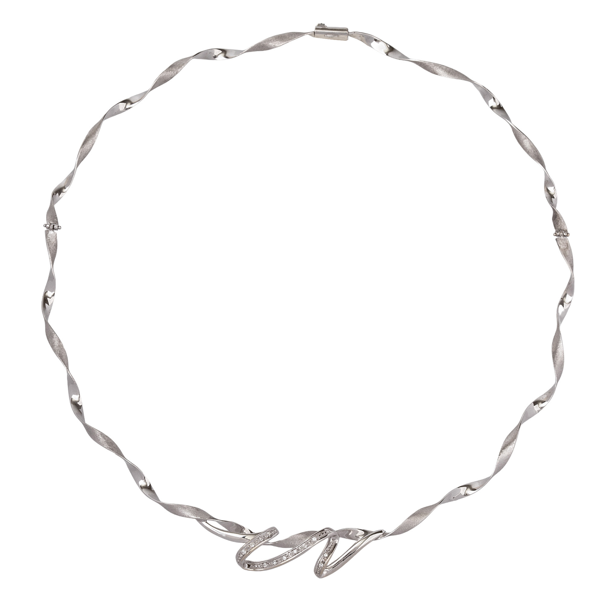 Gargantilha de ouro branco com 0,06ct de brilhantes e 14,5g. Medida 45cm.