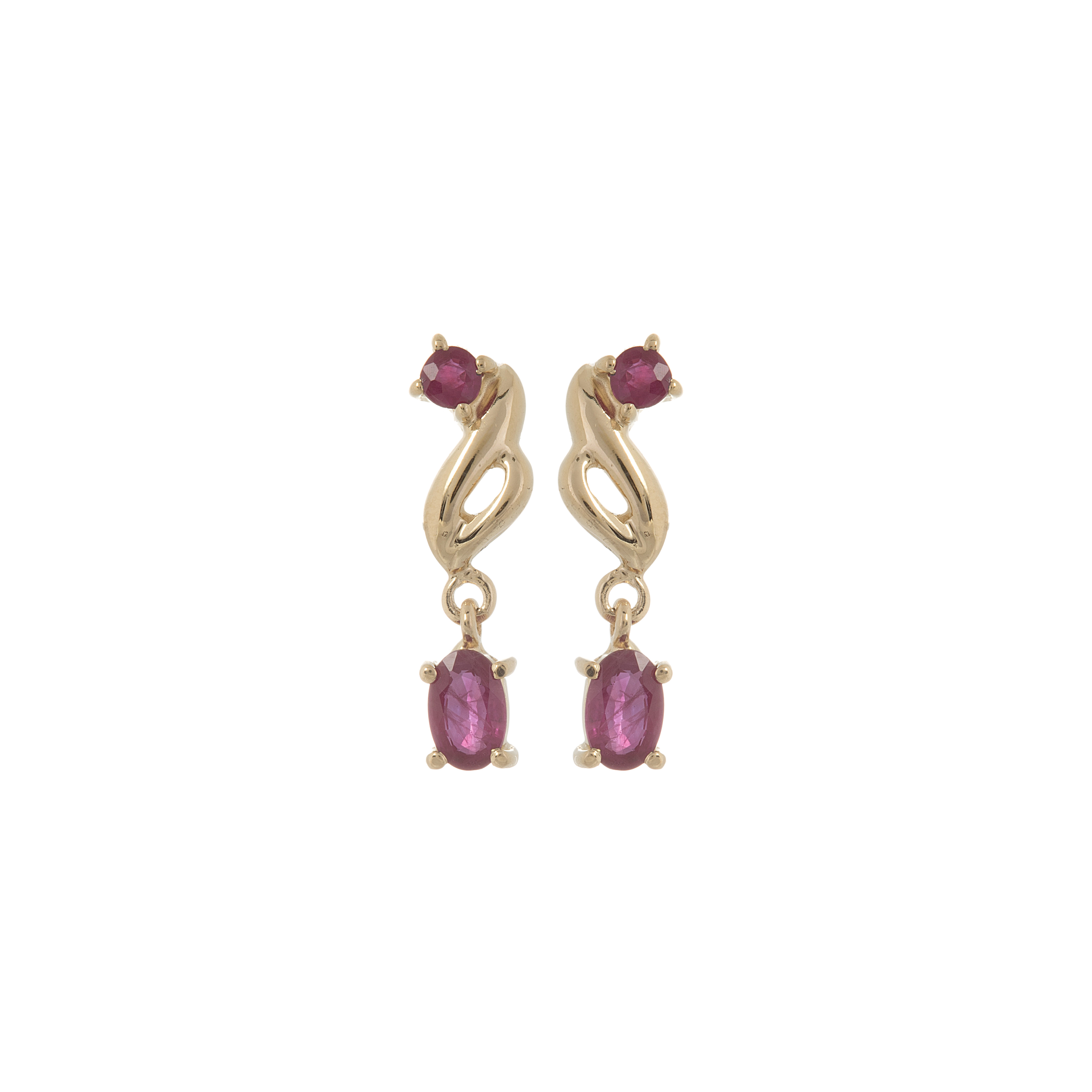 Brinco de ouro amarelo com 0,23ct de rubis e 2,0g. Medida 1,8cm.