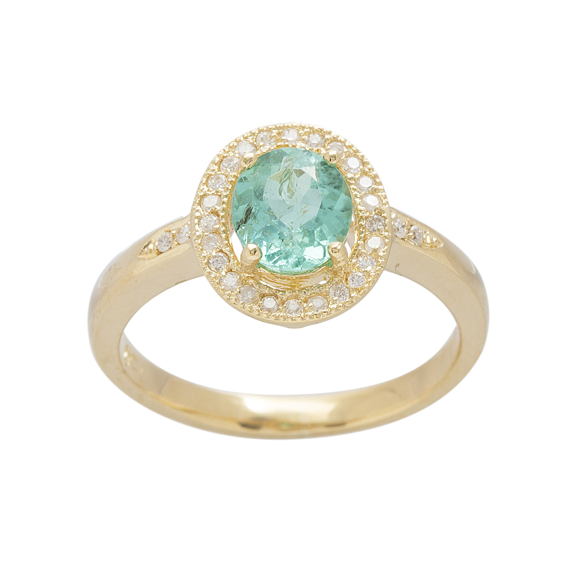 Anel de ouro amarelo com 0,95ct de turmalina verde, 0,15ct de brilhantes e 4,1g. Medida 16.