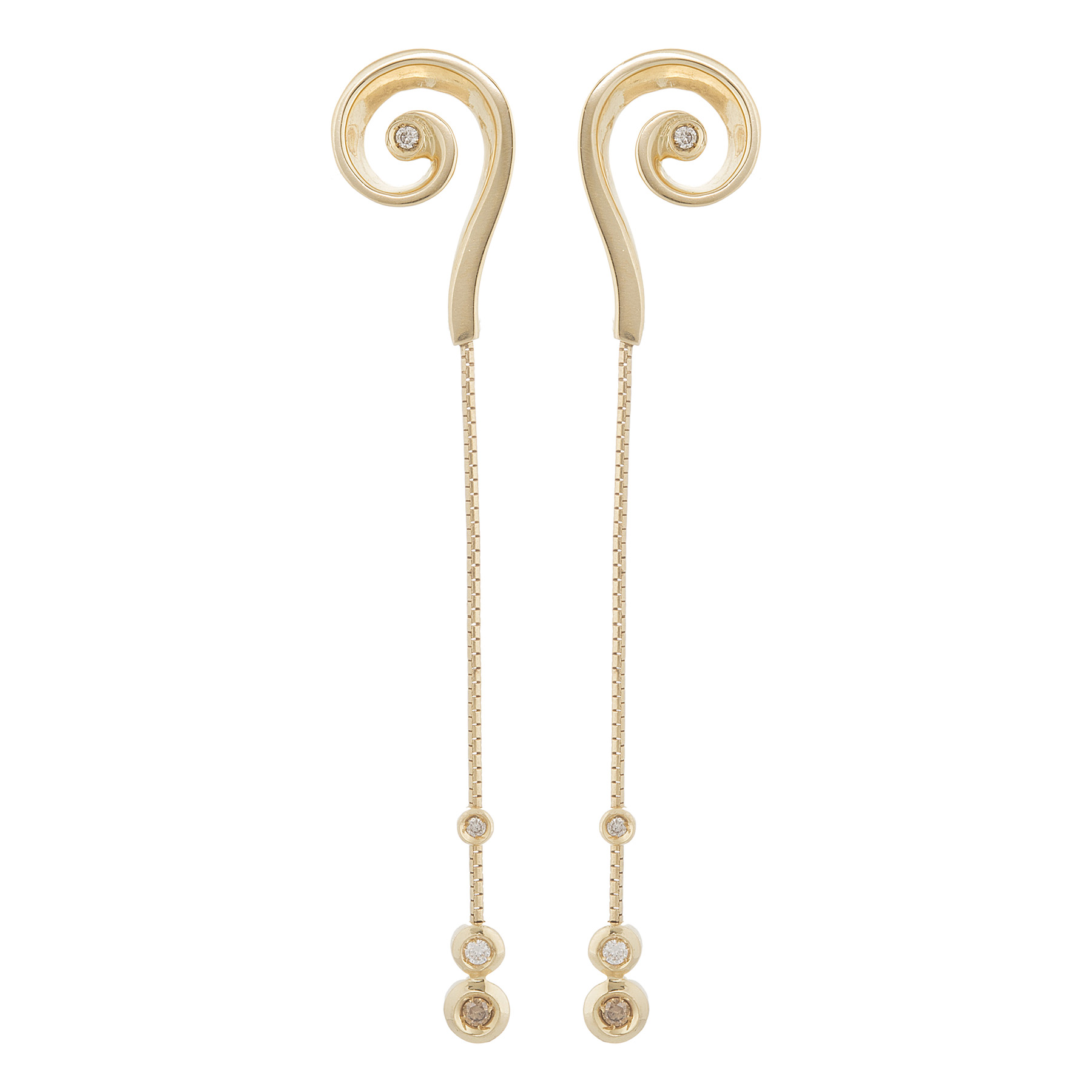 Brinco de ouro amarelo com 0,25ct de brilhantes e 9,1g. Medida 6,5cm.