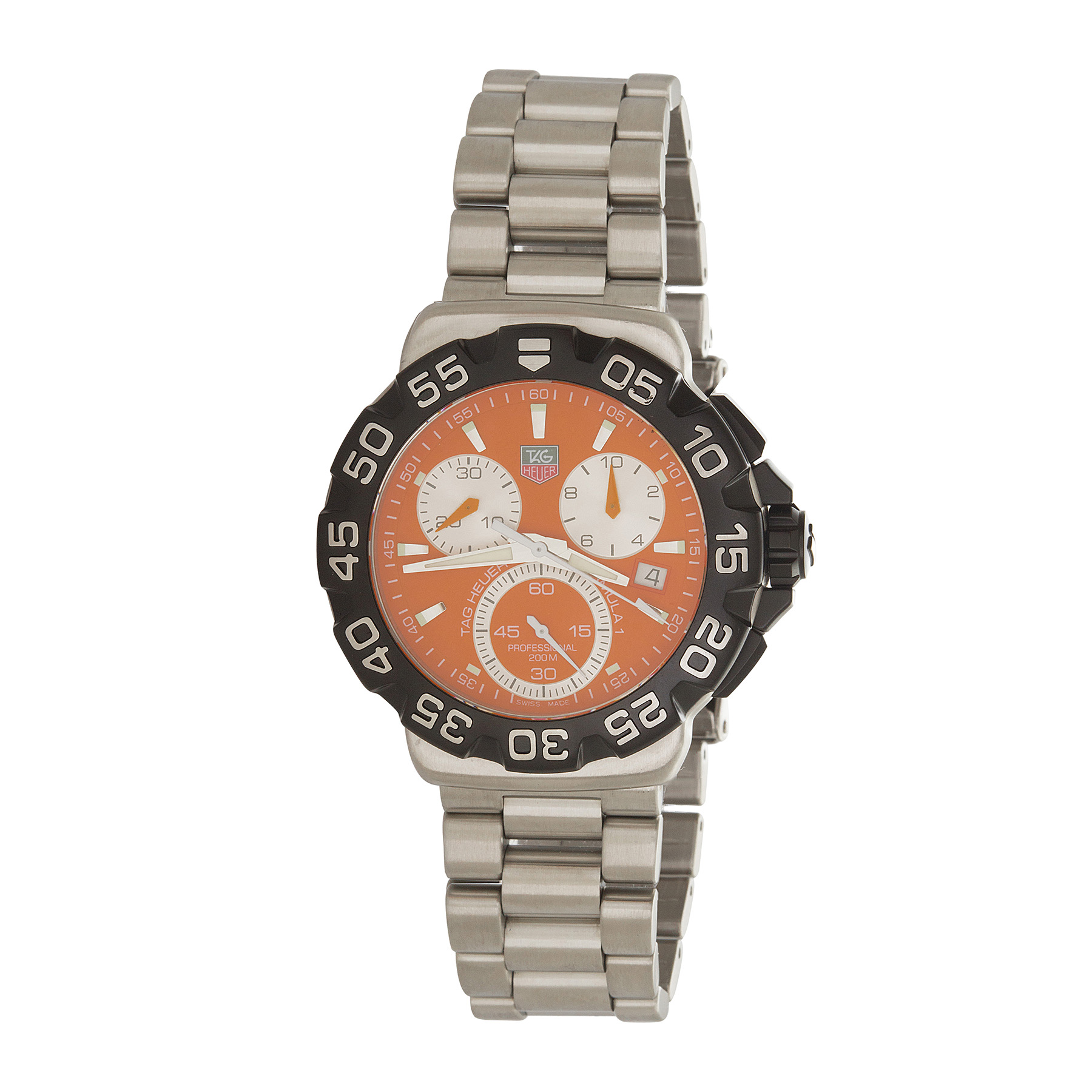 Relógio TAG HEUER FORMULA 1 de aço, chronógrafo, movimento a quartz e vidro de safira. Com caixa original. Medida da caixa 43mm. Medida da pulseira 18cm.