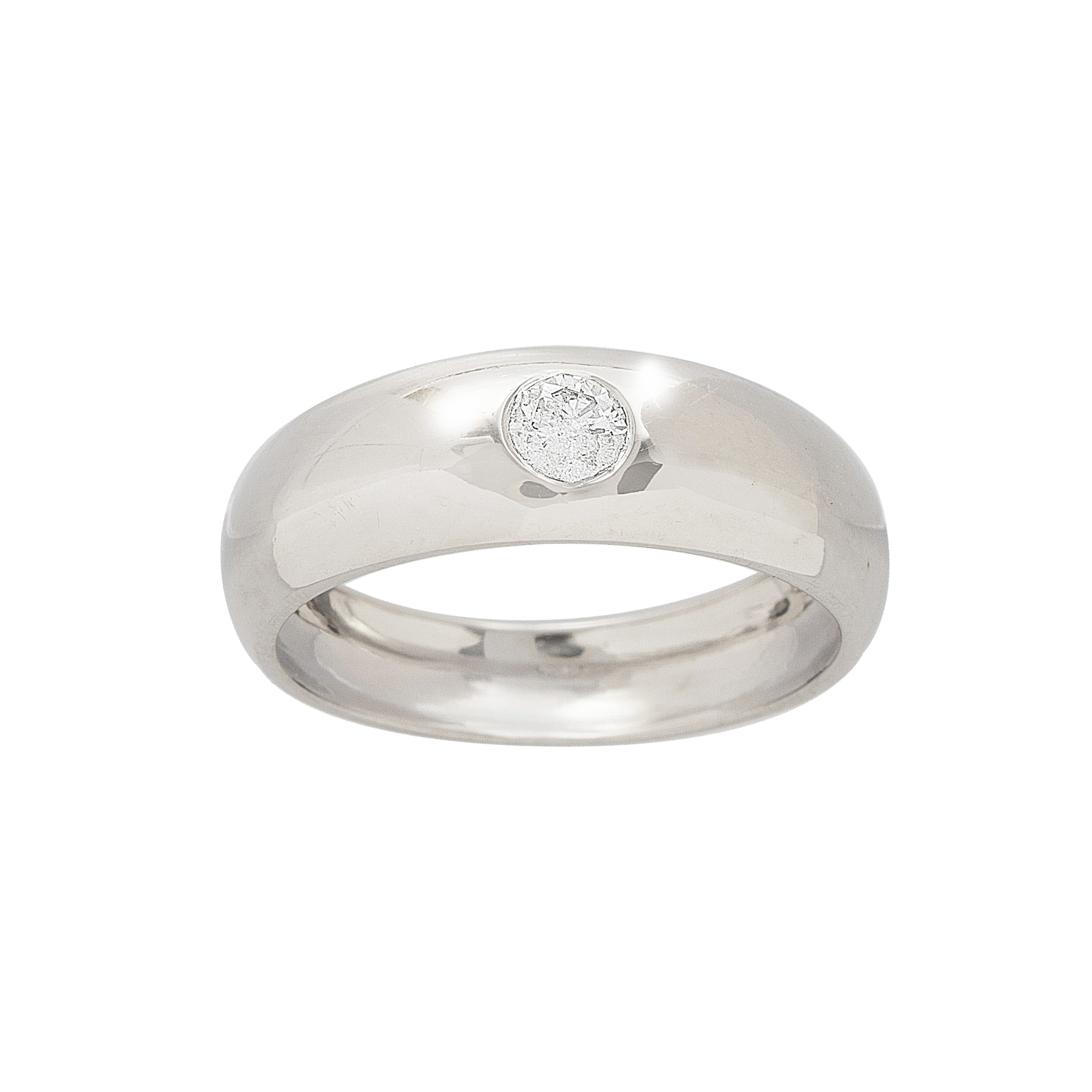 Anel de ouro branco com 0,20ct de brilhante e 3,8g. Medida 17.