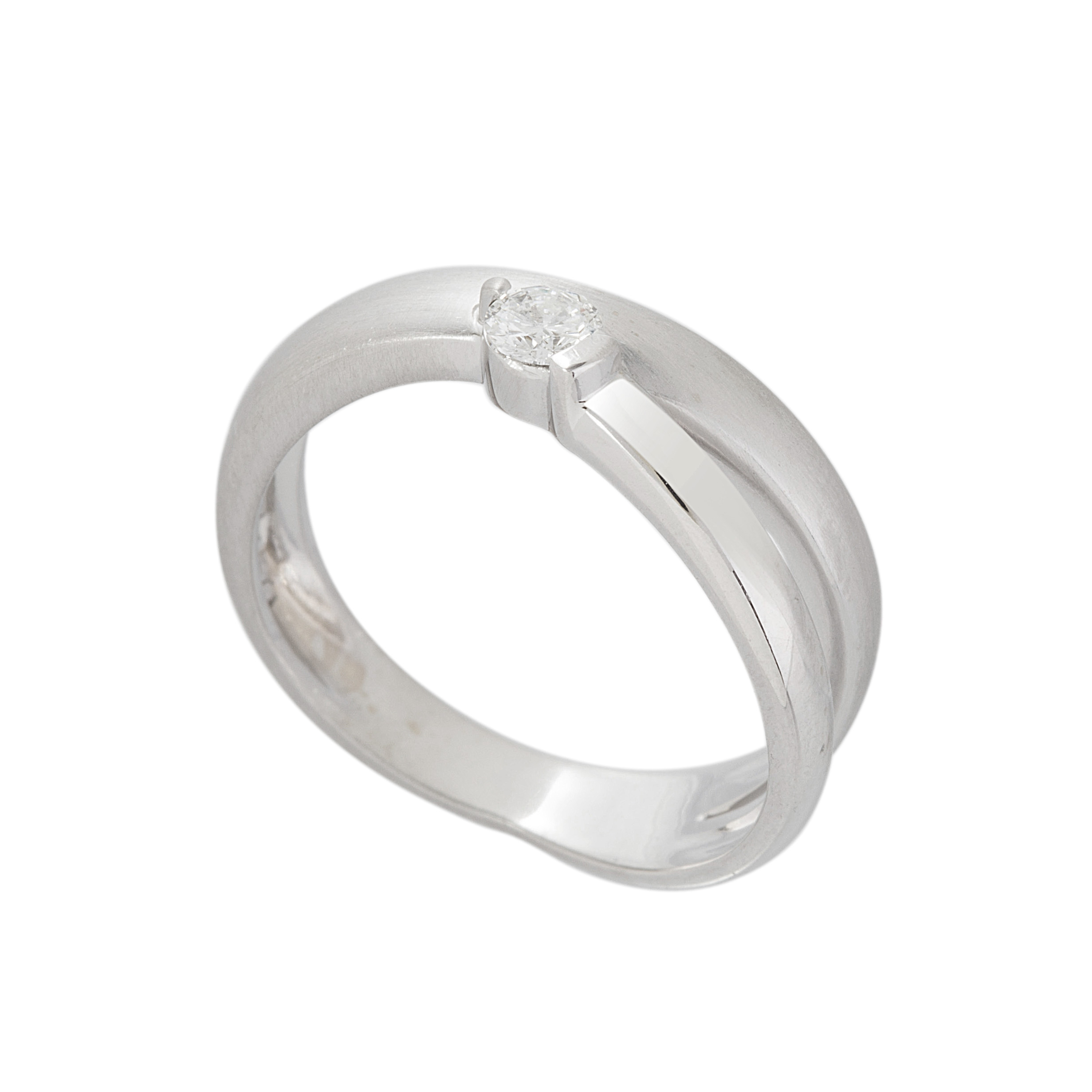 Anel de ouro branco com 0,20ct de brilhante e 4,4g. Medida 16.