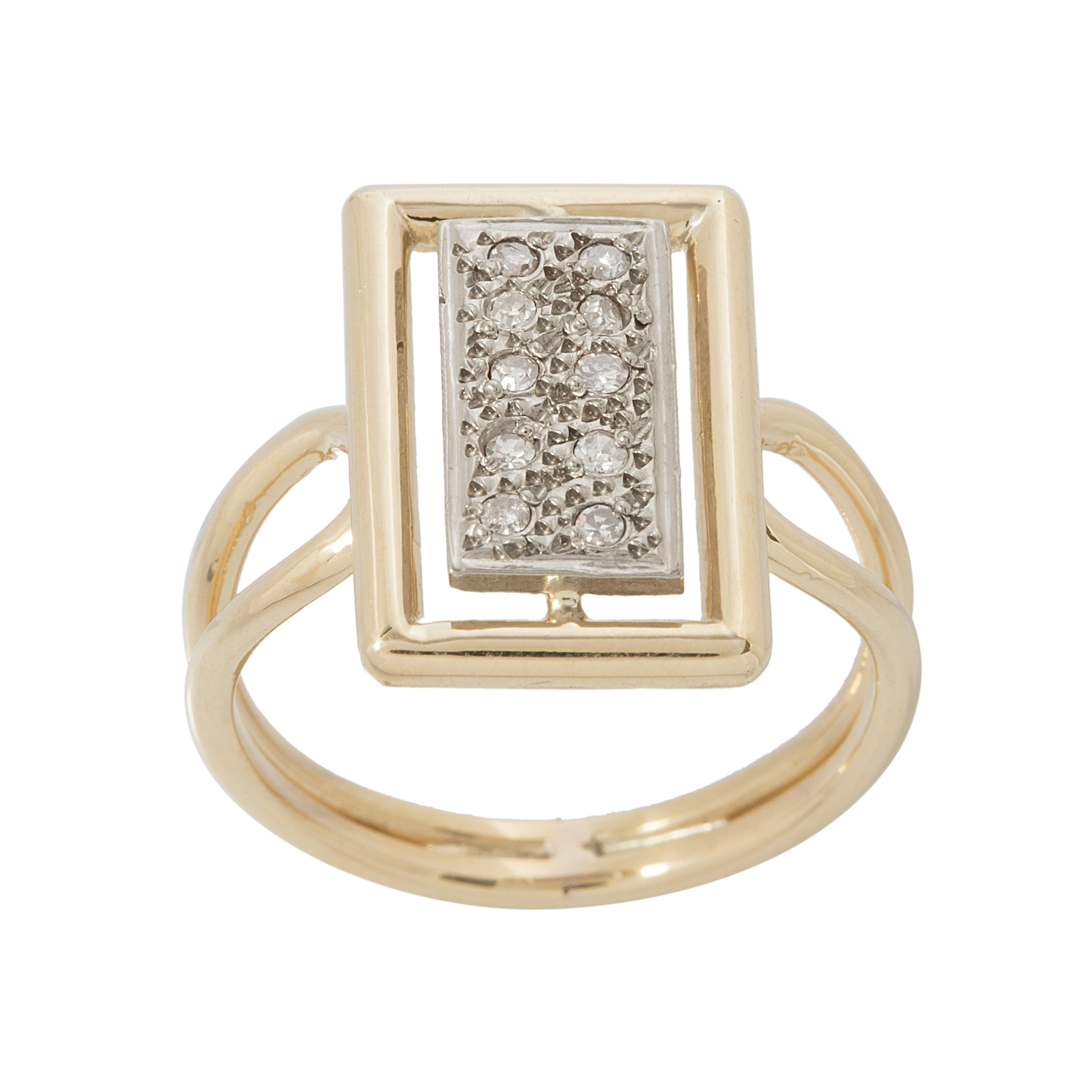 Anel de ouro amarelo e branco com 0,10ct de brilhantes e 4,8g. Medida 15.