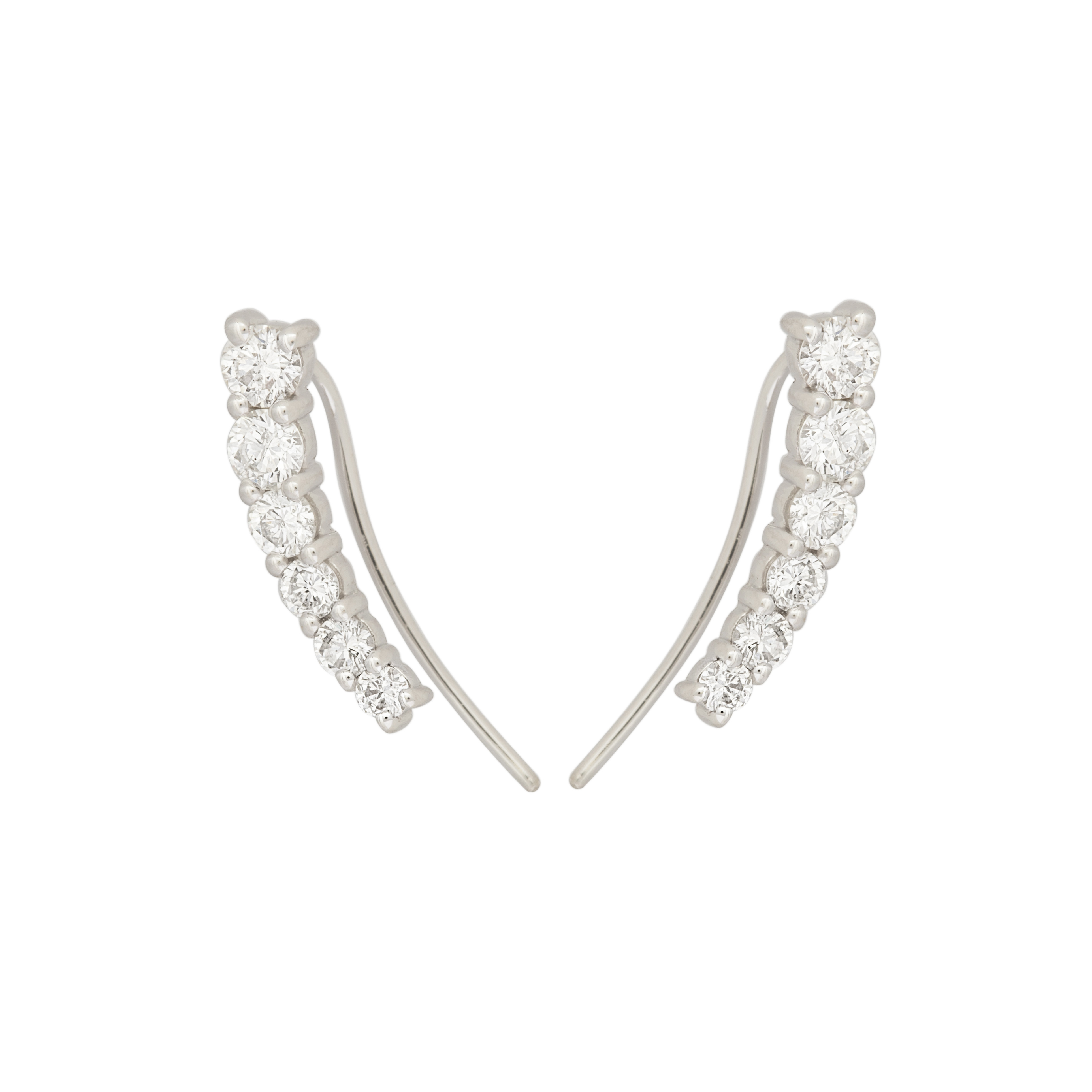 Brinco ear cuff de ouro branco com 0,76ct de brilhantes e 1,6g. Medida 1,5cm.