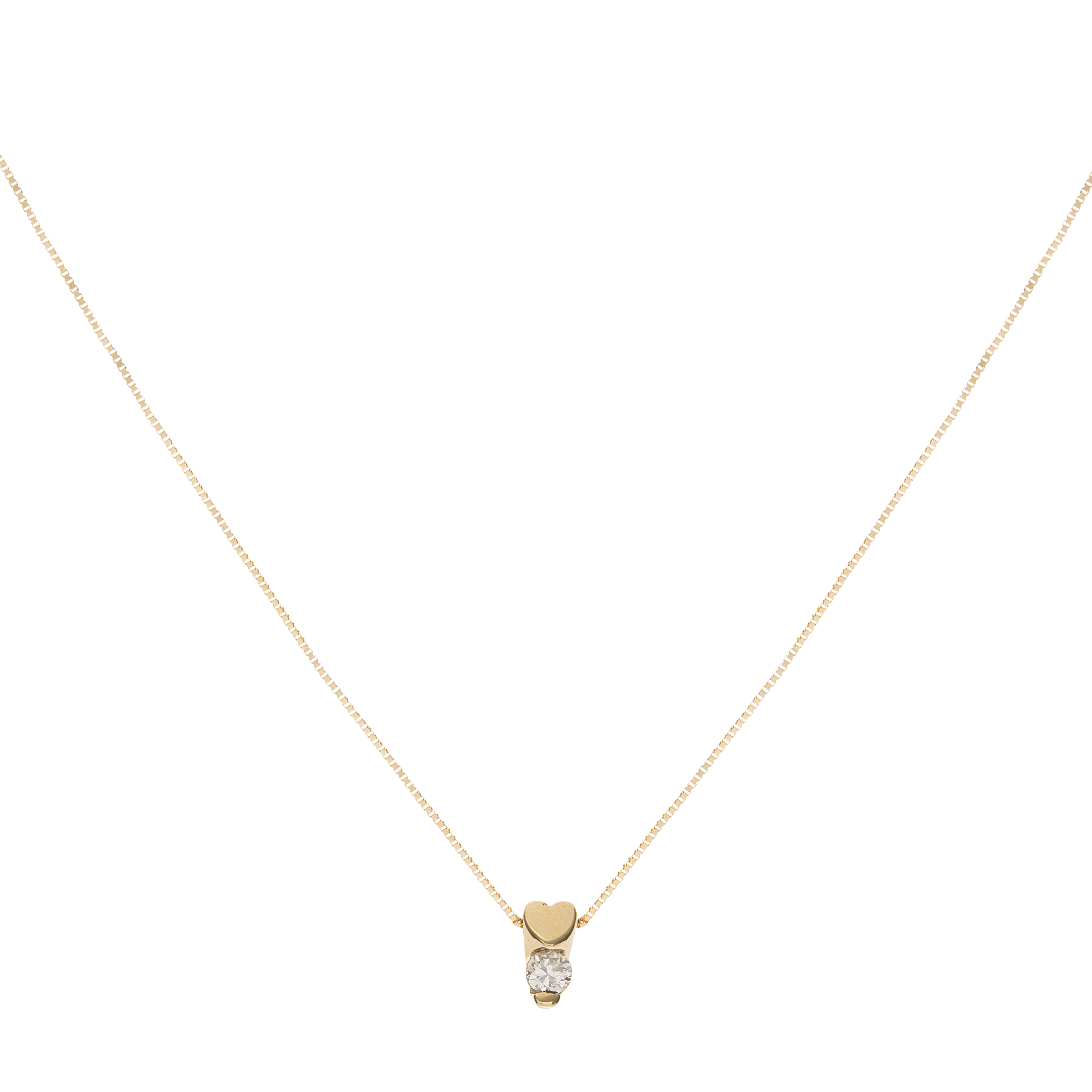 Corrente com pingente de ouro amarelo, 0,09ct de brilhante e 1,4g. Medida da corrente 42cm. Medida do pingente 0,6cm.