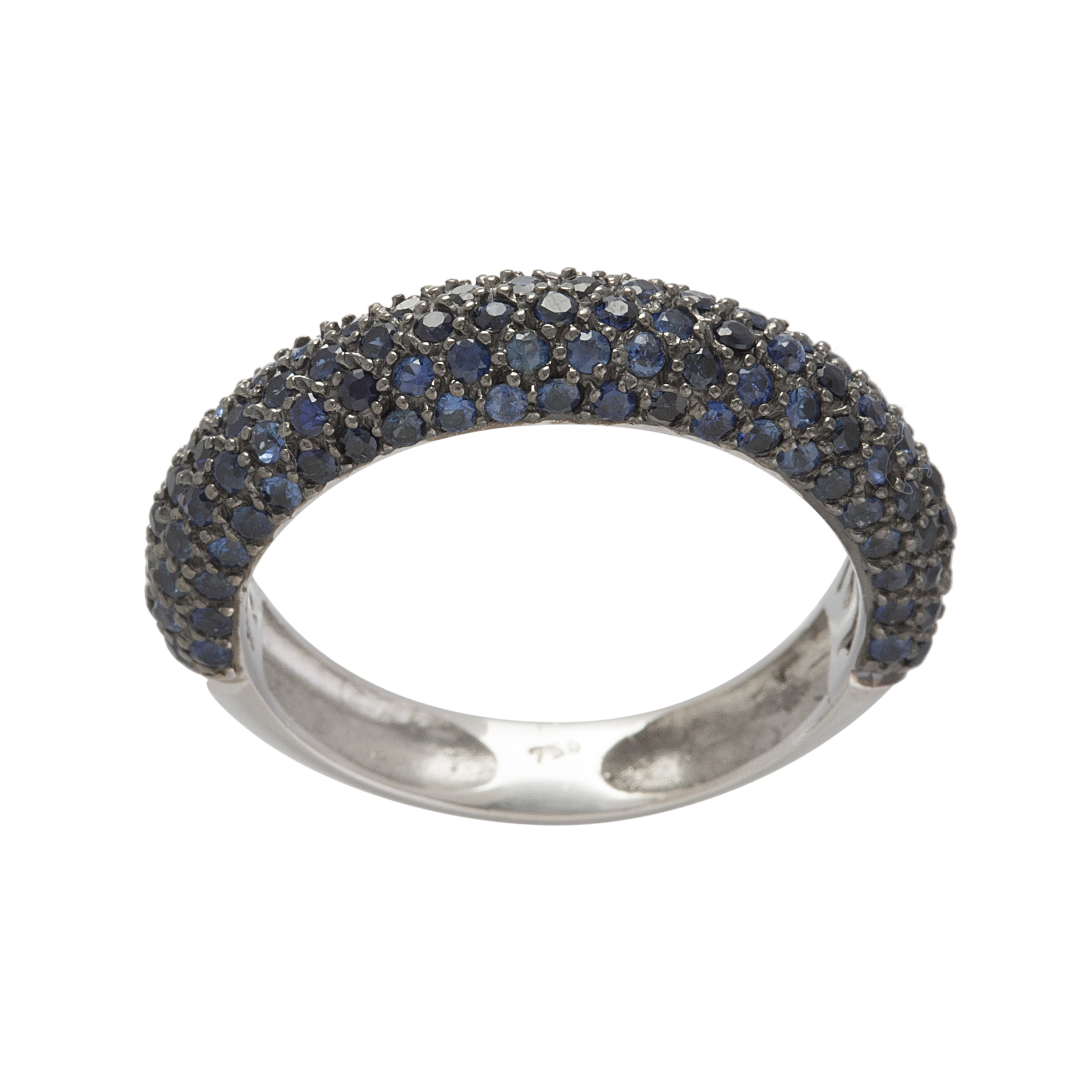 Anel de ouro branco com safiras e 4,4g. Medida 19.