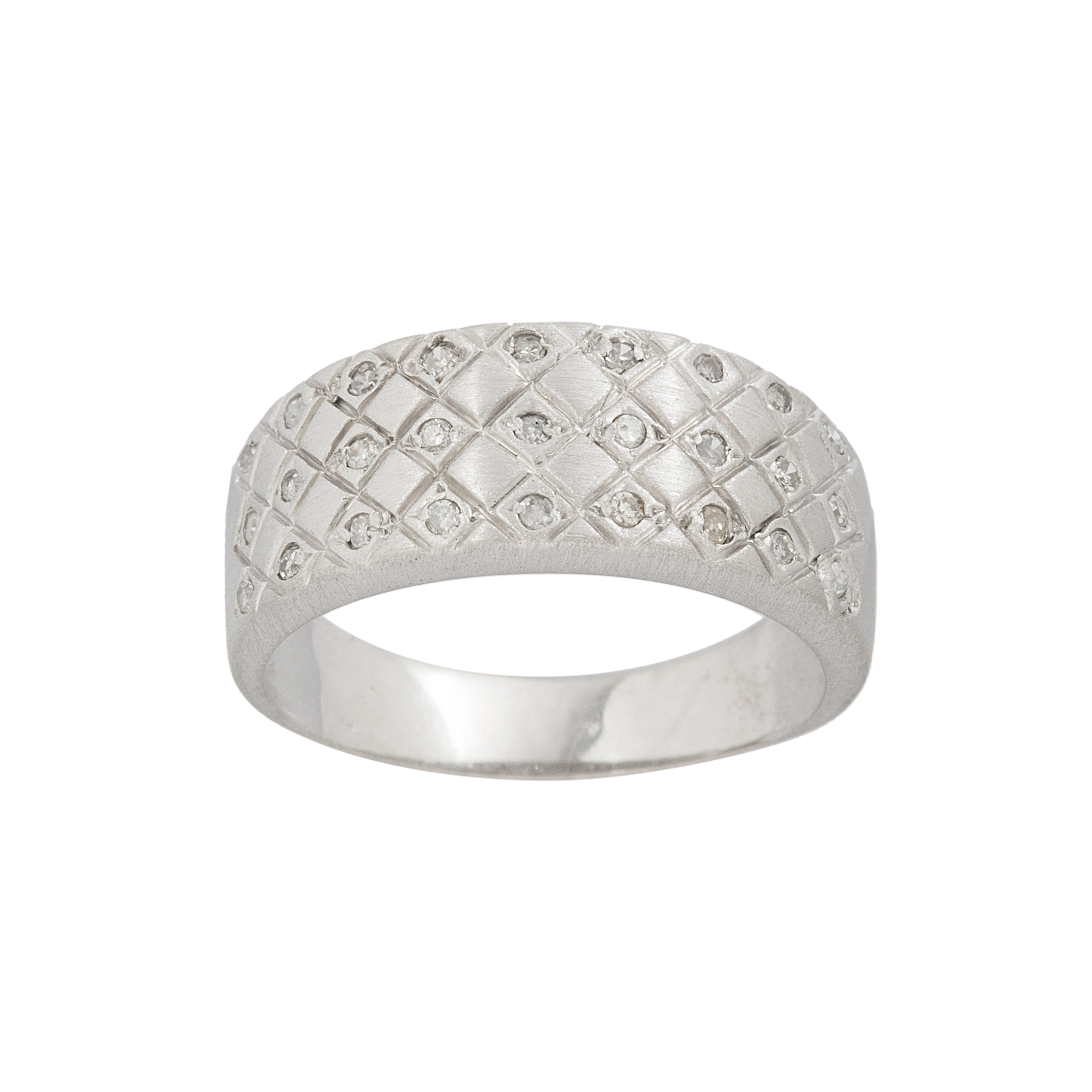 Anel de ouro branco com 0,15ct de brilhantes e 3,7g. Assinado VIVARA. Medida 14.