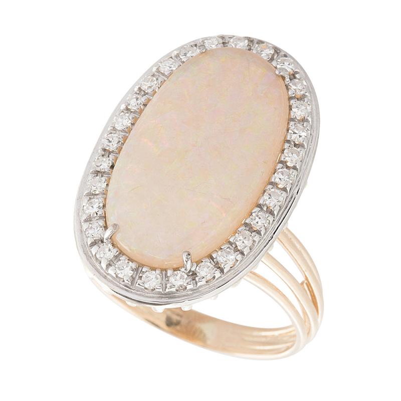 Anel de ouro amarelo com 5,14ct de opala, 0,60ct de brilhantes e 8,8g. Medida 19.