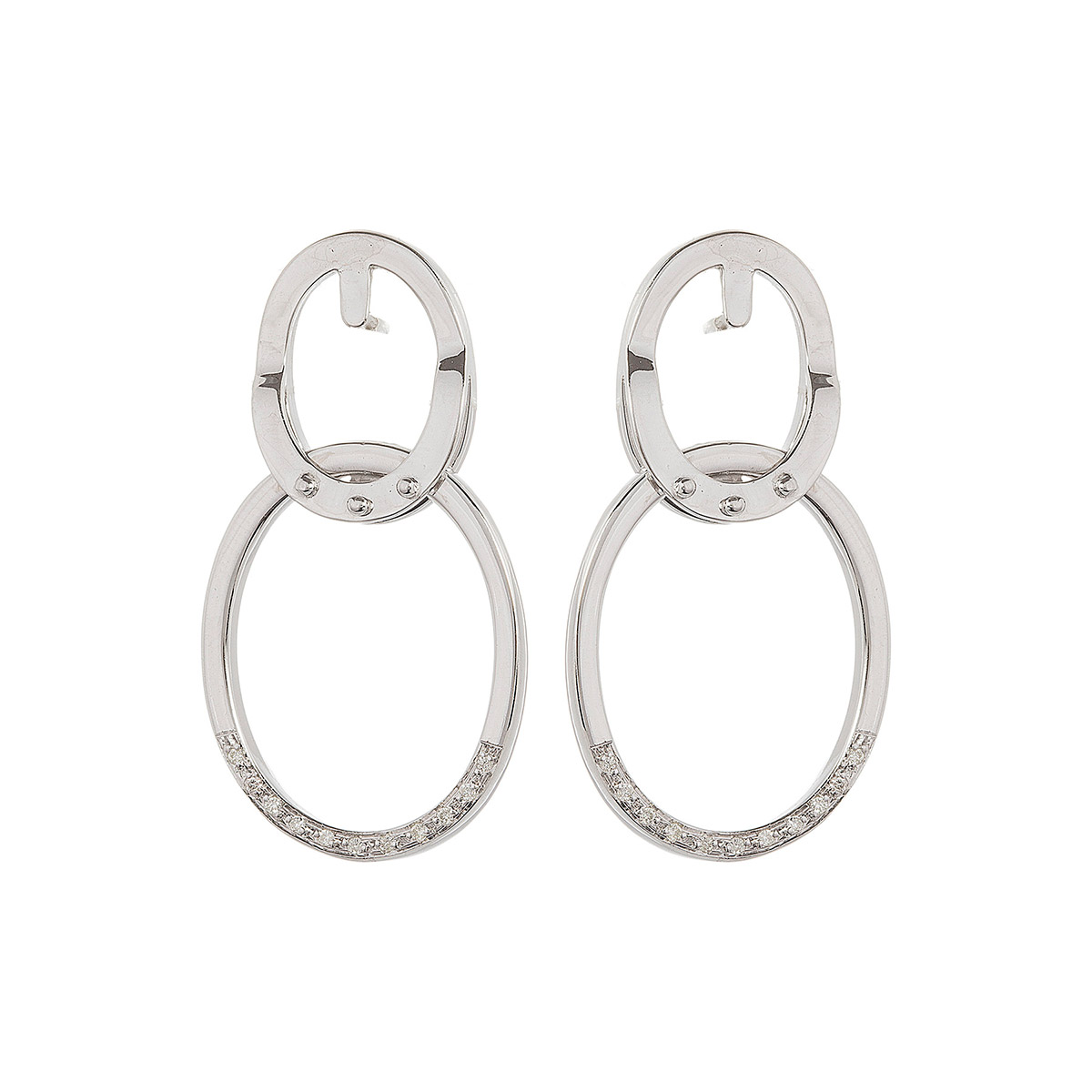 Brinco de ouro branco com 0,10ct de brilhantes e 10,2g. Medida 4cm.