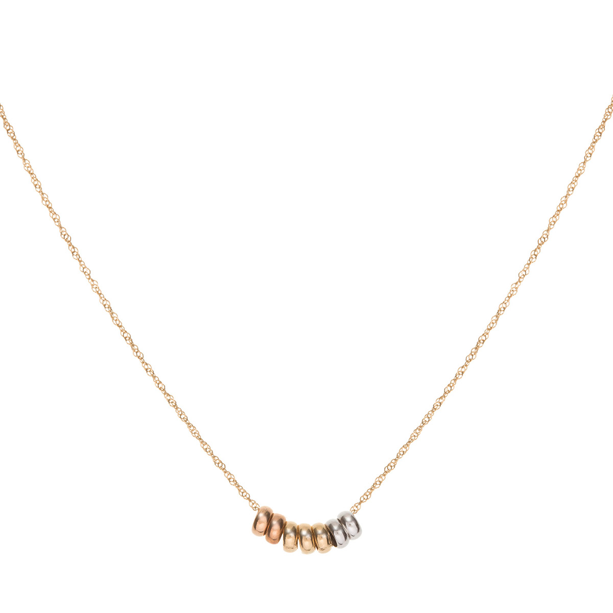 Corrente com pingente de ouro amarelo, branco e rosé. Medida da corrente 38cm. Medida dos pingentes 0,3cm.