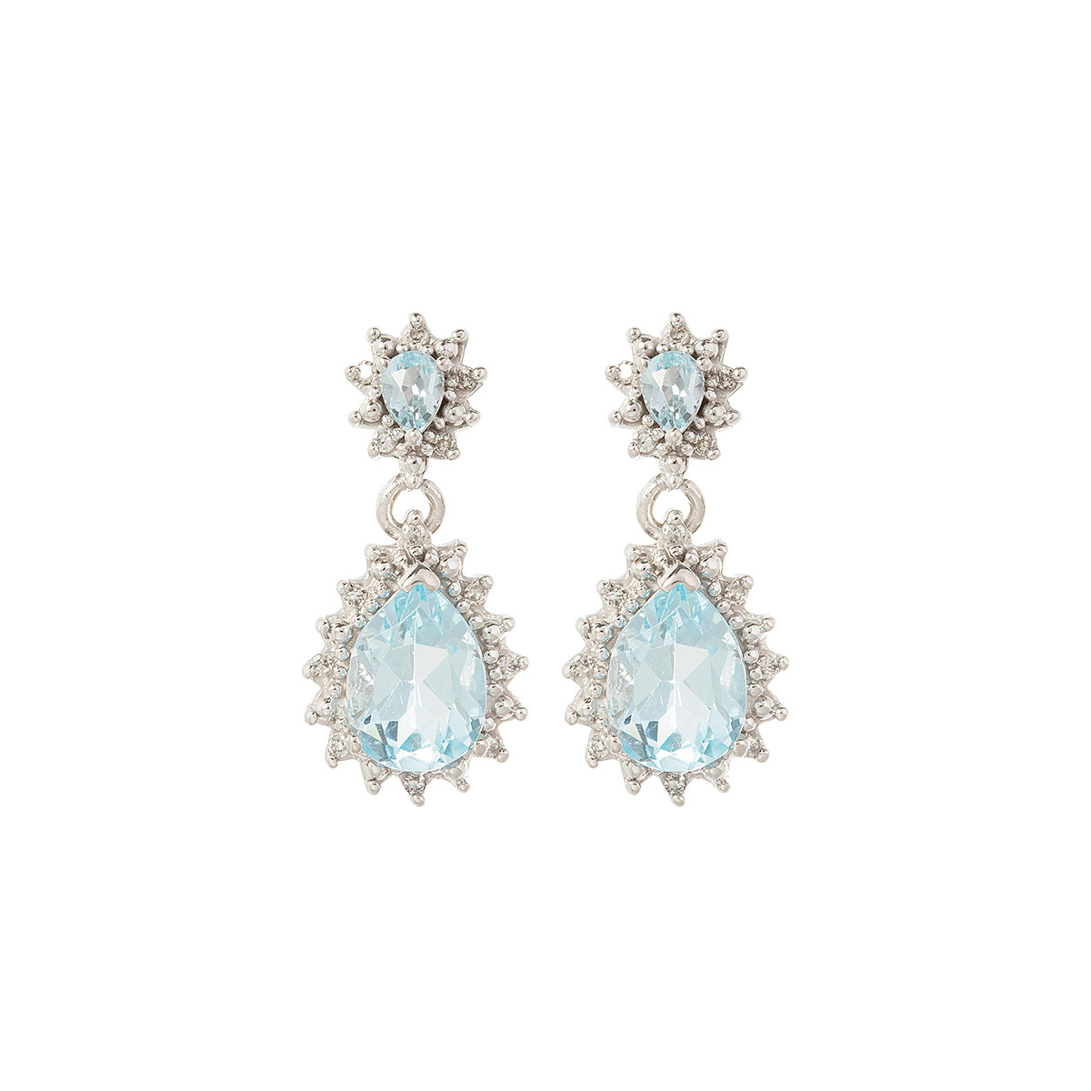 Brinco de ouro branco com 3,85ct de águas-marinhas, 0,15ct de brilhantes e 6,5g. Medida 3,2cm.