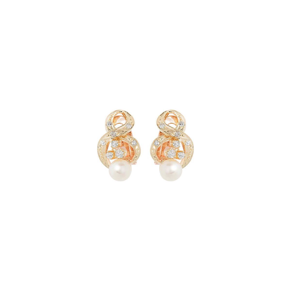 Brinco de ouro amarelo com pérolas (6mm), 0,50ct de brilhantes e 5,9g. Medida 3cm.