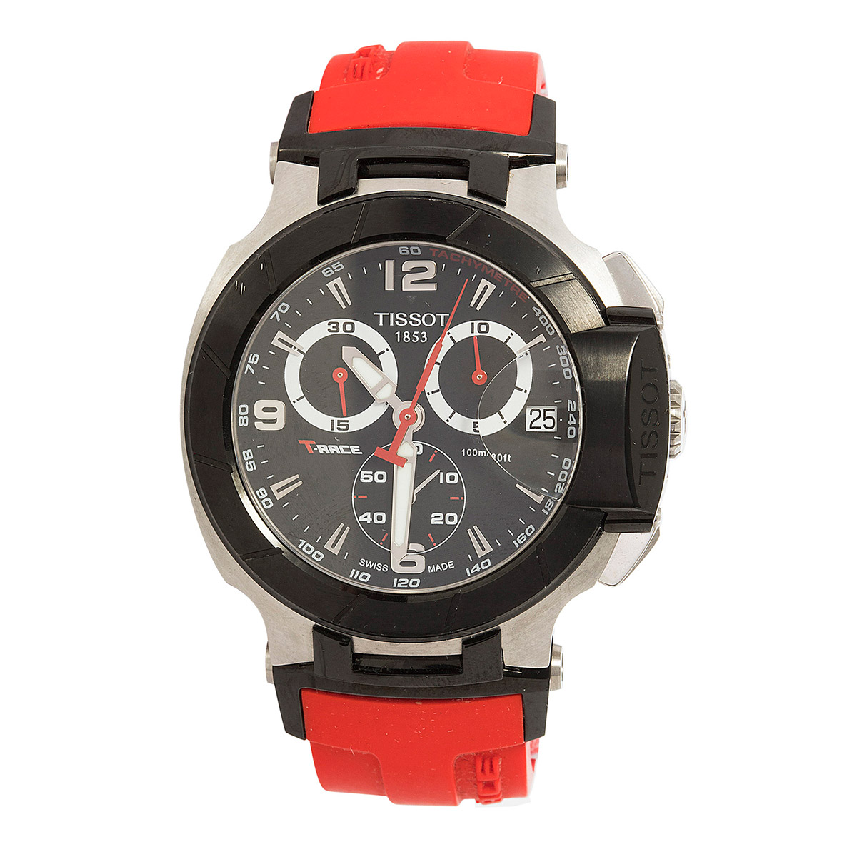 Relógio TISSOT T-Race com caixa de aço, pulseira de borracha, movimento a quartz, chronógrafo e vidro de cristal. Com caixa e certificado originais. Medida da caixa 45mm. Medida da pulseira 22,5cm.