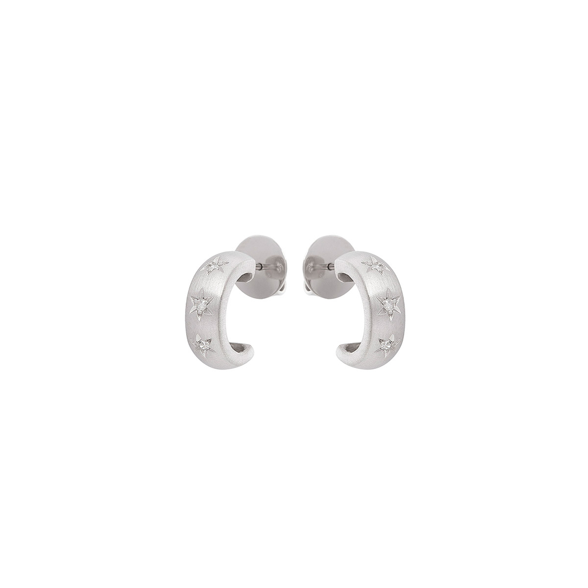 Brinco de ouro branco com 0,10ct de brilhantes e 5,4g. Medida 1,5cm.