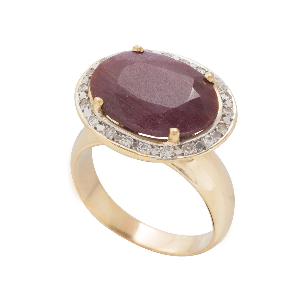 Anel de ouro amarelo com rubi, 0,30ct de brilhantes e 8,3g. Medida 22.