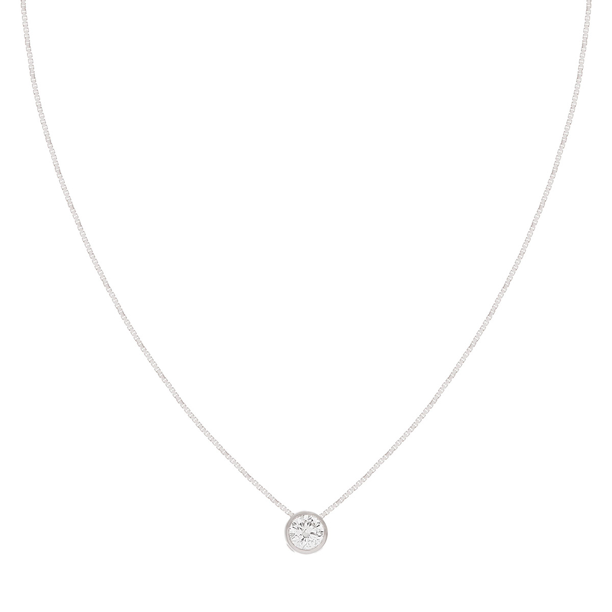 Corrente com pingente de ouro branco, 0,40ct de brilhante (H/I1) e 1,9g. Medida da corrente 42cm. Medida do pingente 0,5cm.