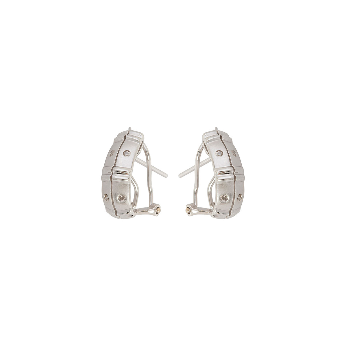 Brinco de ouro branco com 0,05ct de brilhantes e 3,5g. Medida 1,5cm.