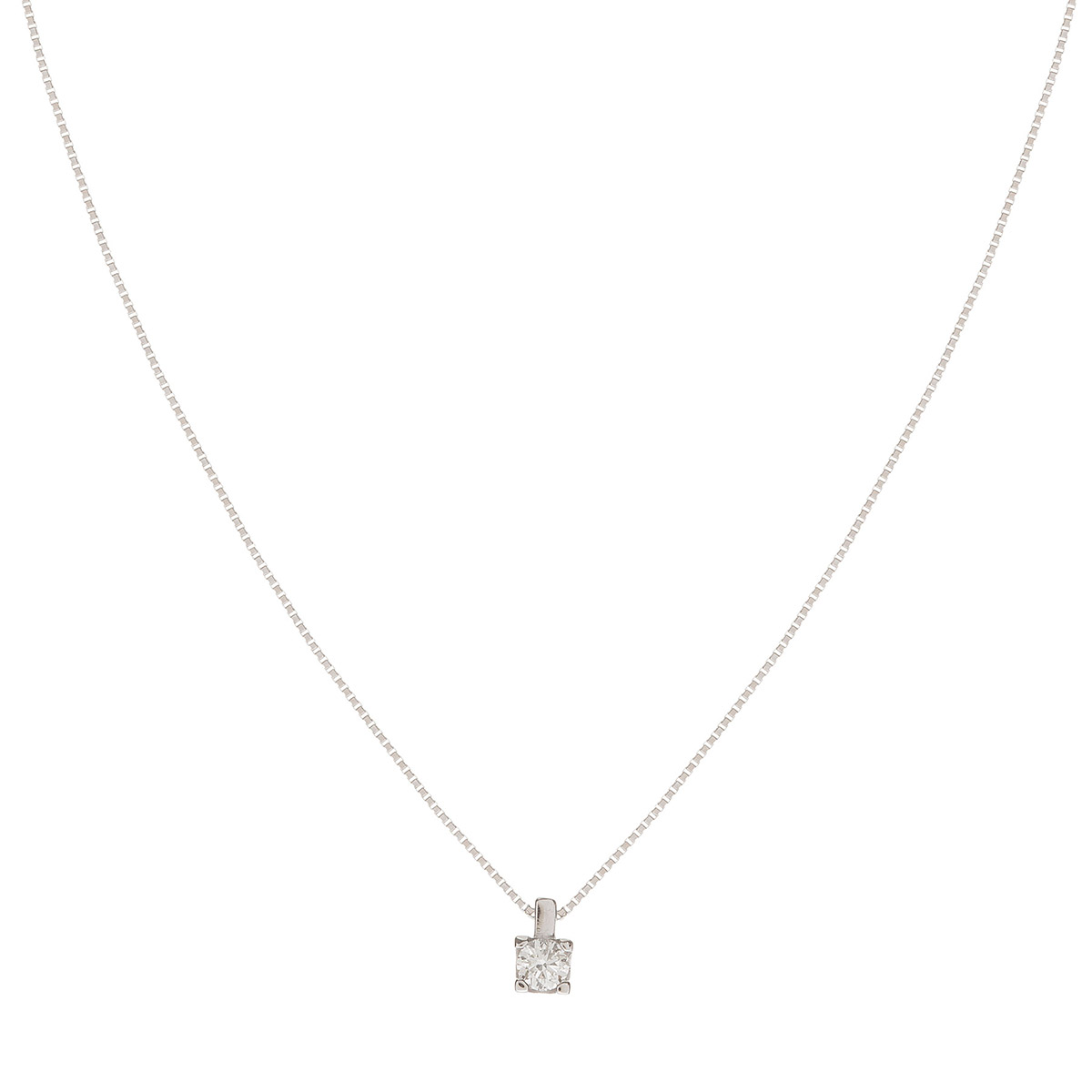Corrente com pingente de ouro branco, 0,15ct de brilhante e 1,7g. Assinado VIVARA. Medida da corrente 40cm. Medida do pingente 0,5cm.