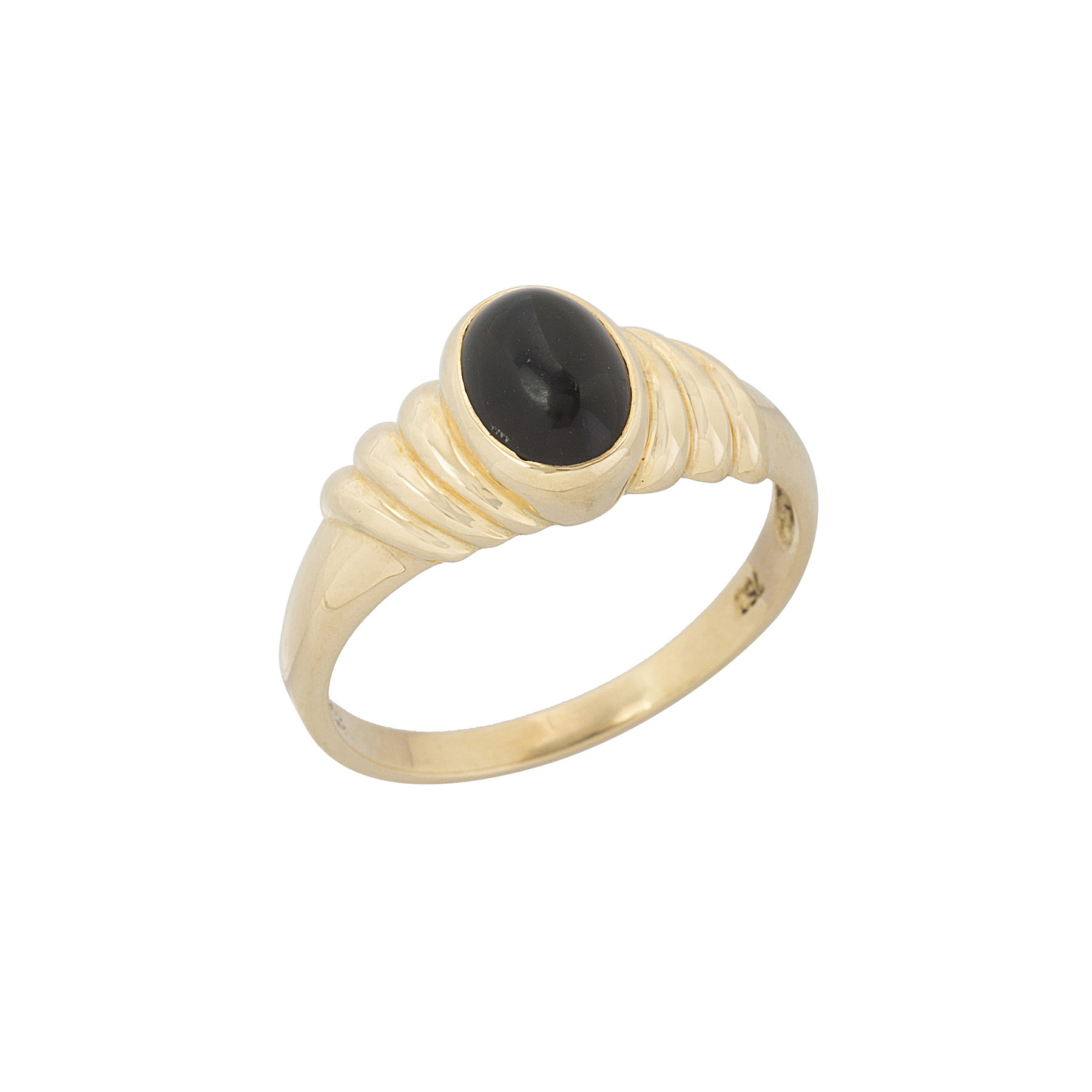 Anel de ouro amarelo com onix e 3,3g. Medida 17.