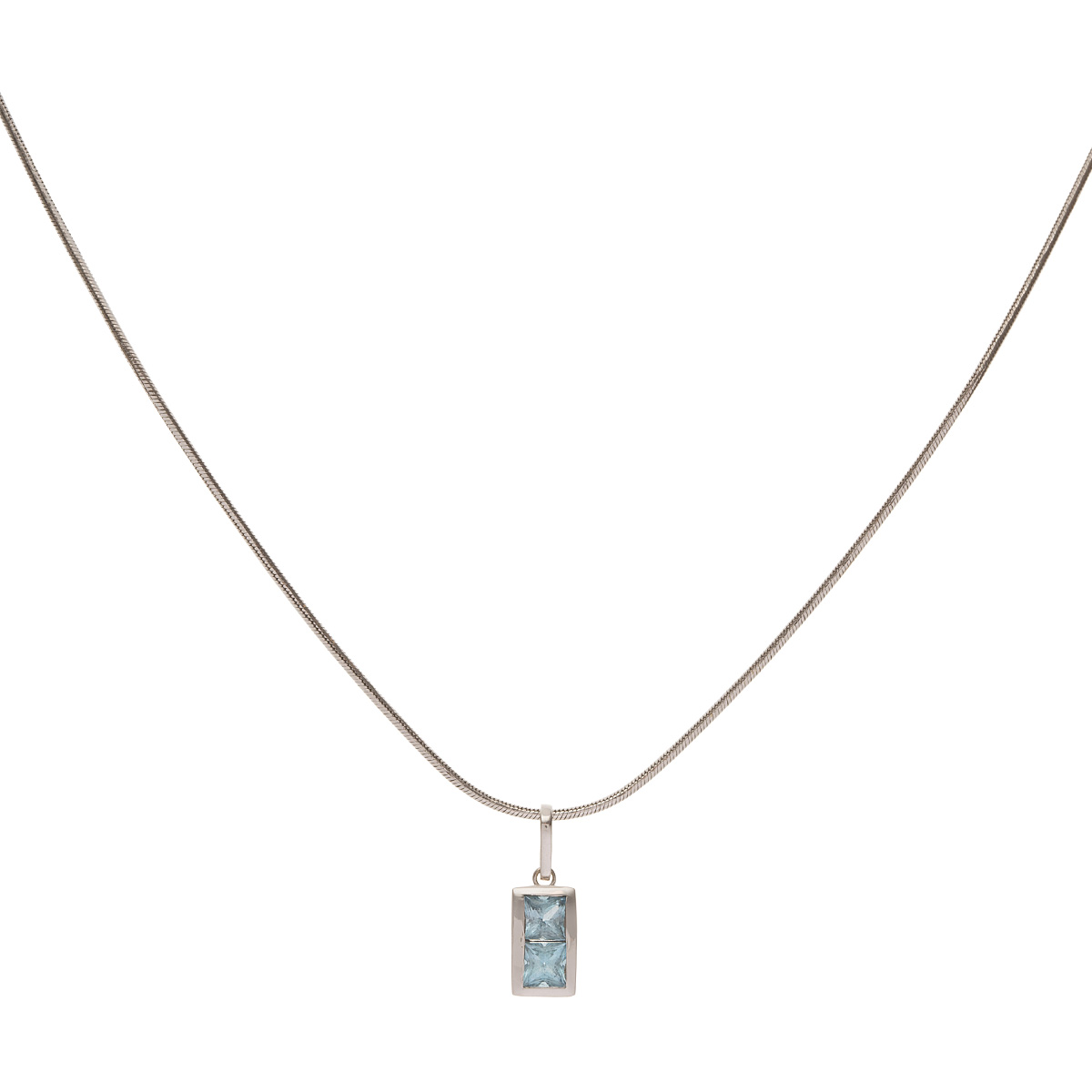 Corrente com pingente de ouro branco, topázio azul e 6,0g. Medida da corrente 40cm. Medida do pingente 1,7cm.