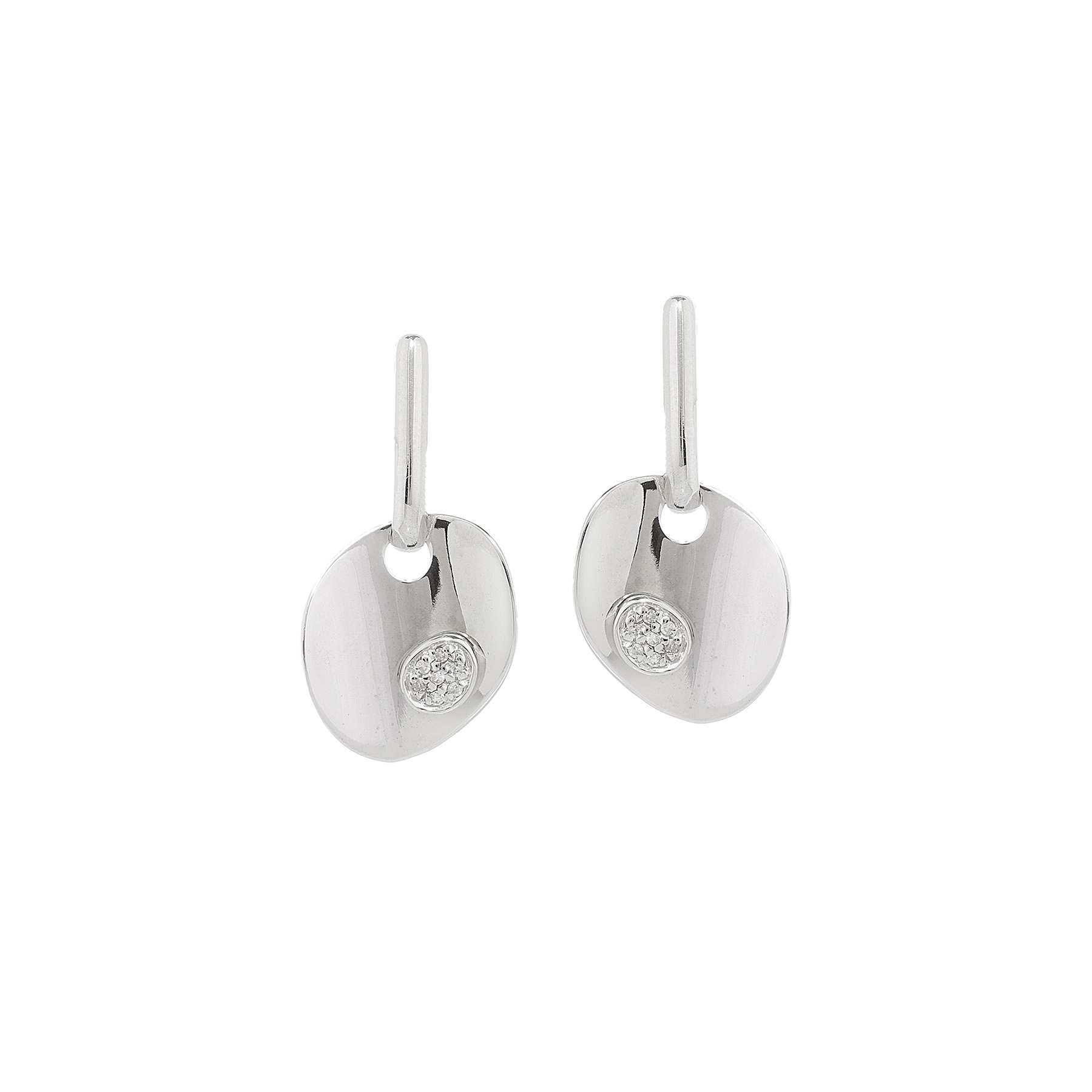 Brinco de ouro branco com 0,08ct de brilhantes e 5,8g. Assinado VIVARA. Medida 3cm.
