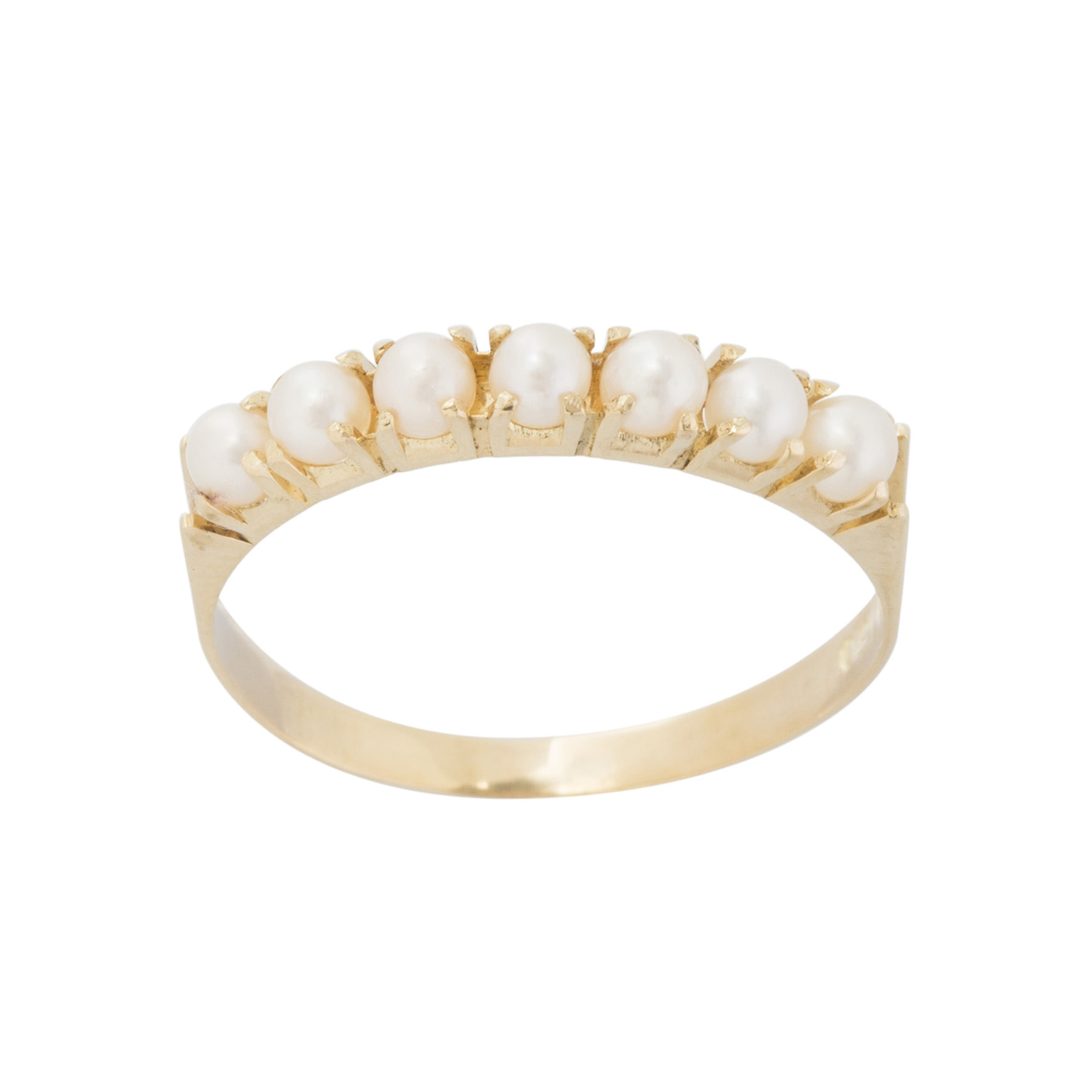 Meia-aliança de ouro amarelo com pérolas (2,5mm). Medida 16.