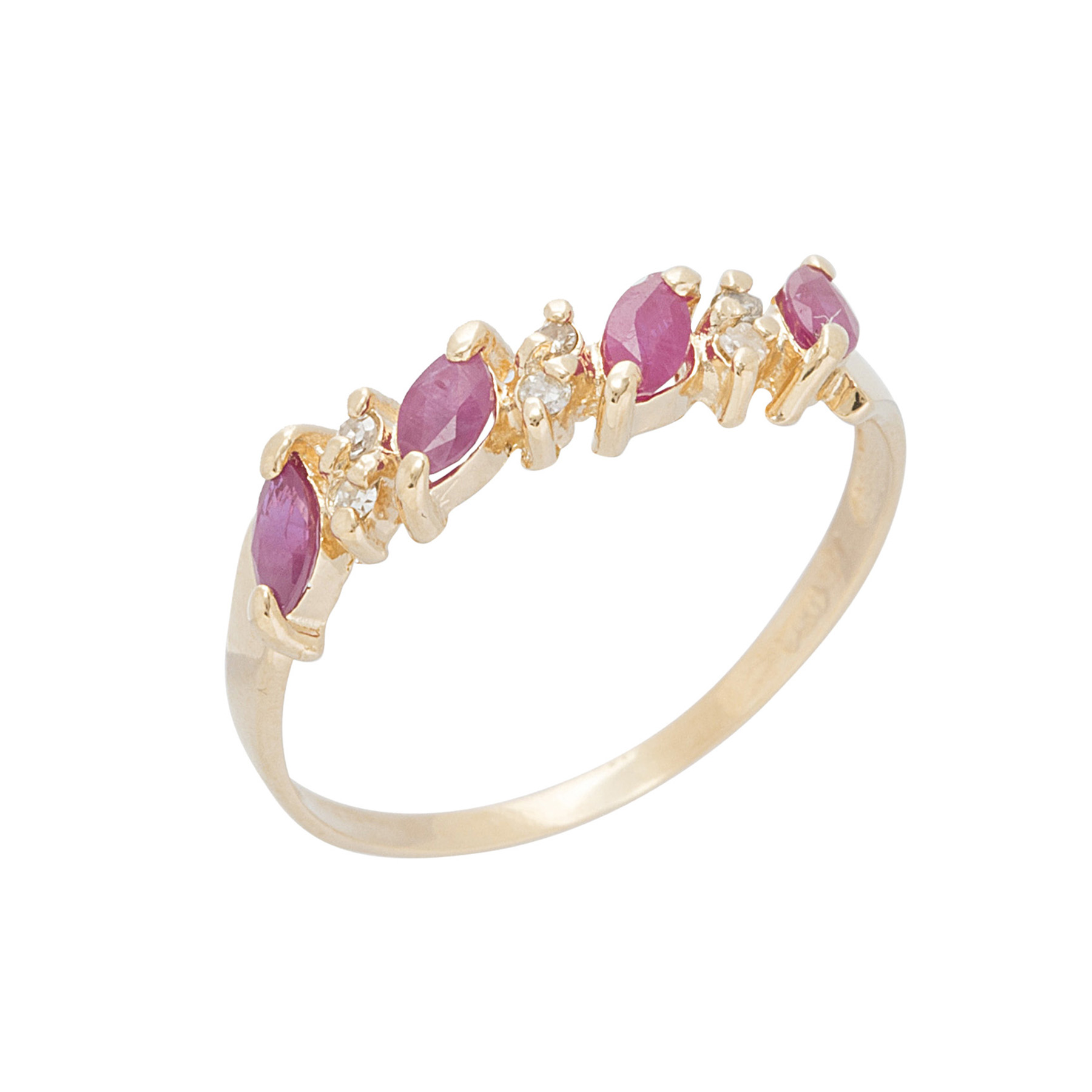 Meia-aliança de ouro amarelo com rubis e 0,05ct de brilhantes. Medida 15.