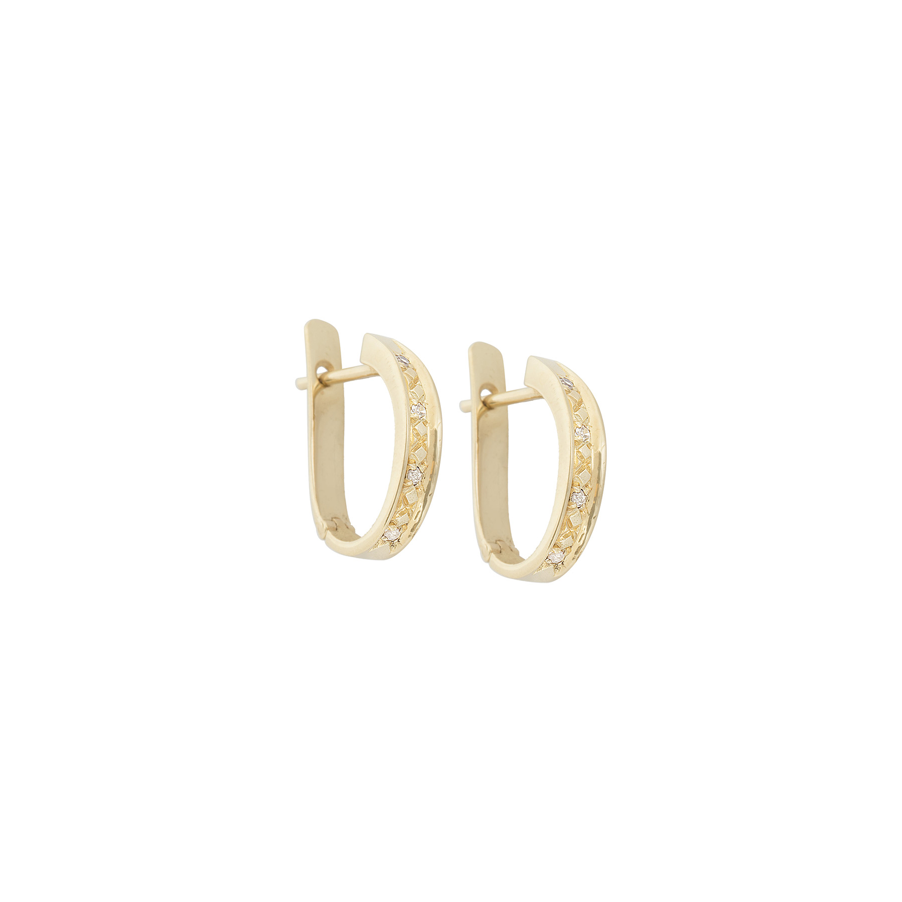 Brinco de ouro amarelo com 0,05ct de brilhantes e 3,1g. Medida 1,5cm.