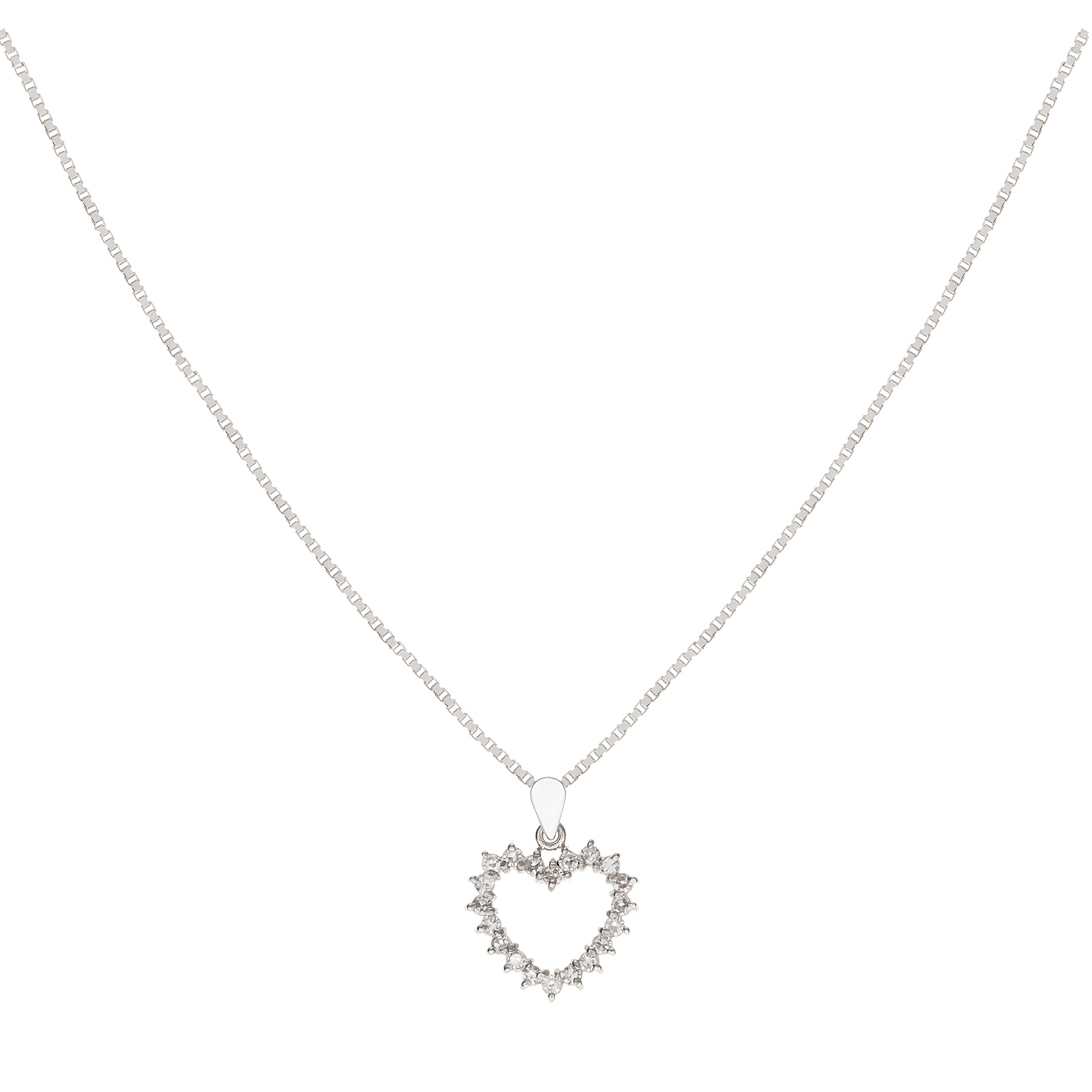 Corrente com pingente de ouro branco, 0,50ct de brilhantes e 5,2g. Medida da corrente 39cm. Medida do pingente 1cm.