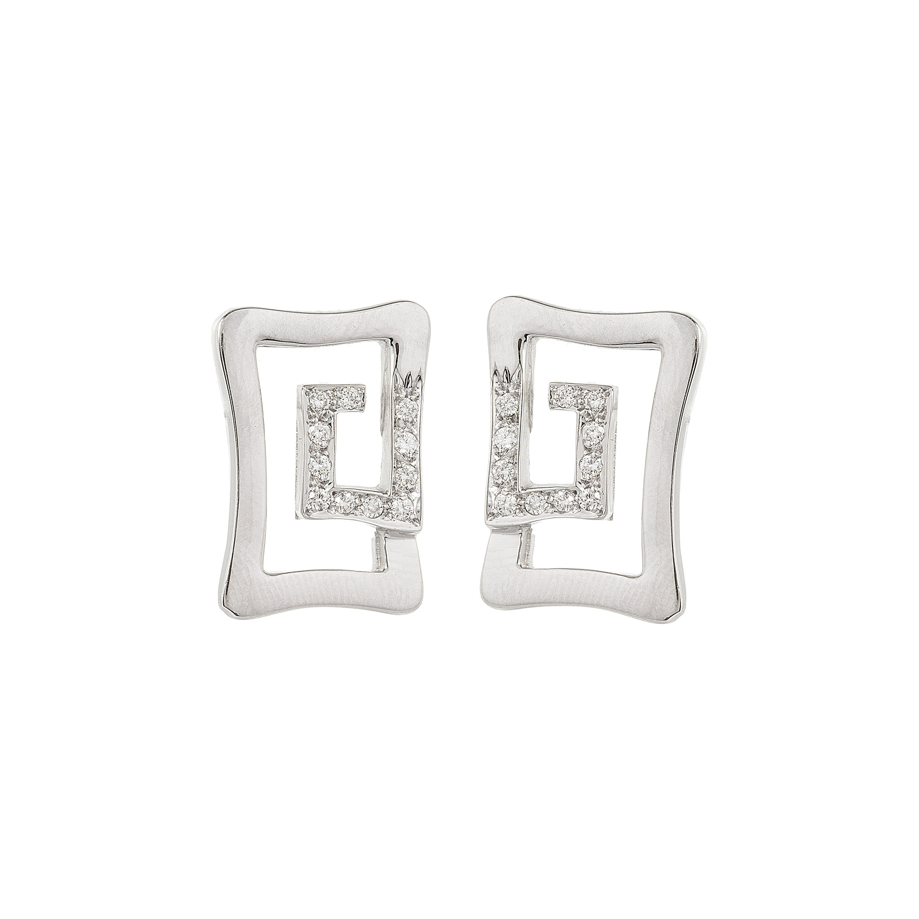 Brinco de ouro branco com 0,25ct de brilhantes e 5,3g. Medida 2cm.