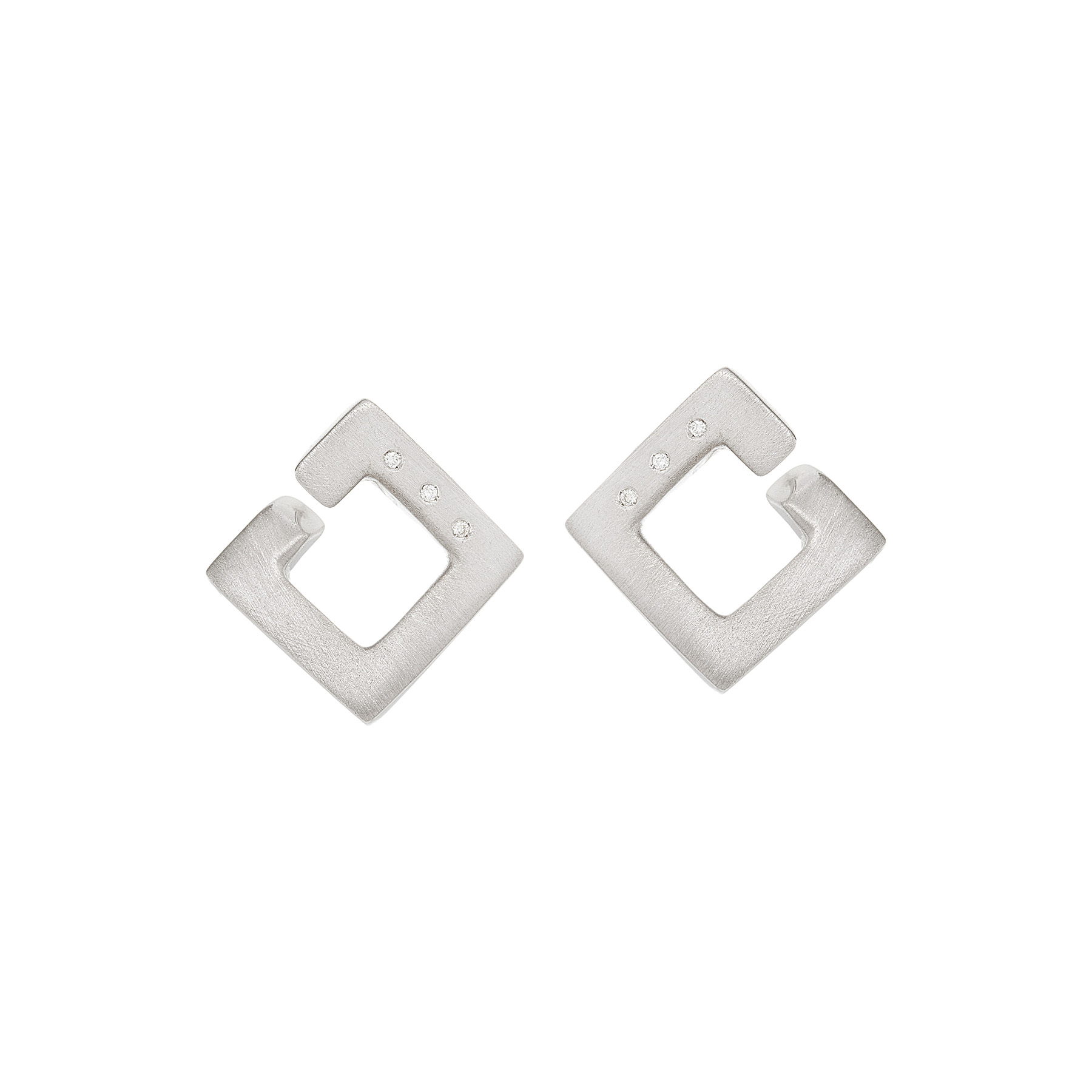 Brinco de ouro branco com 0,05ct de brilhantes e 7,0g. Medida 1,5cm.